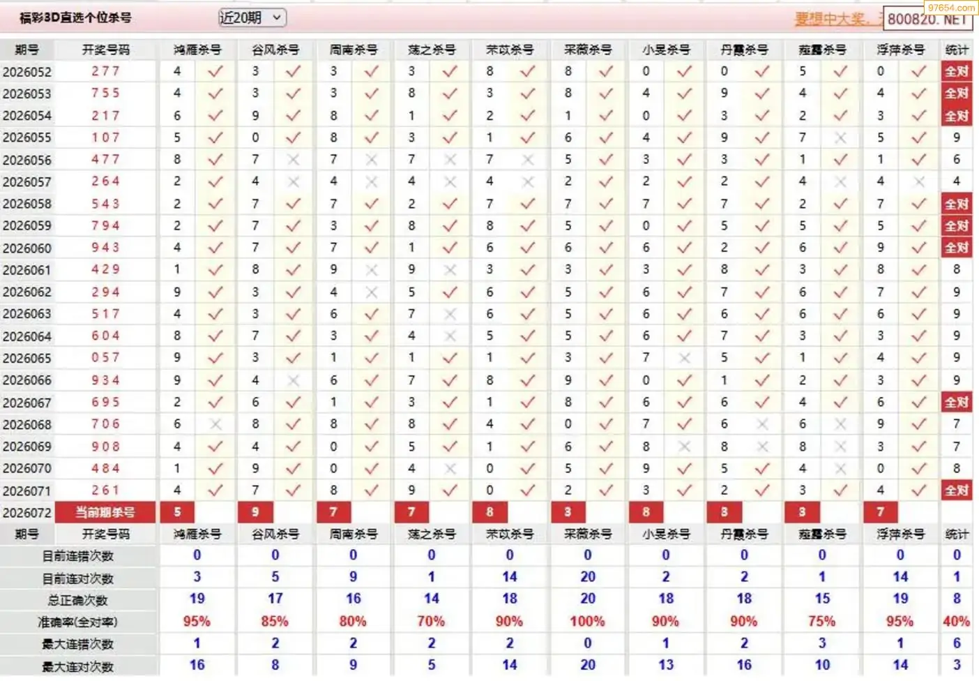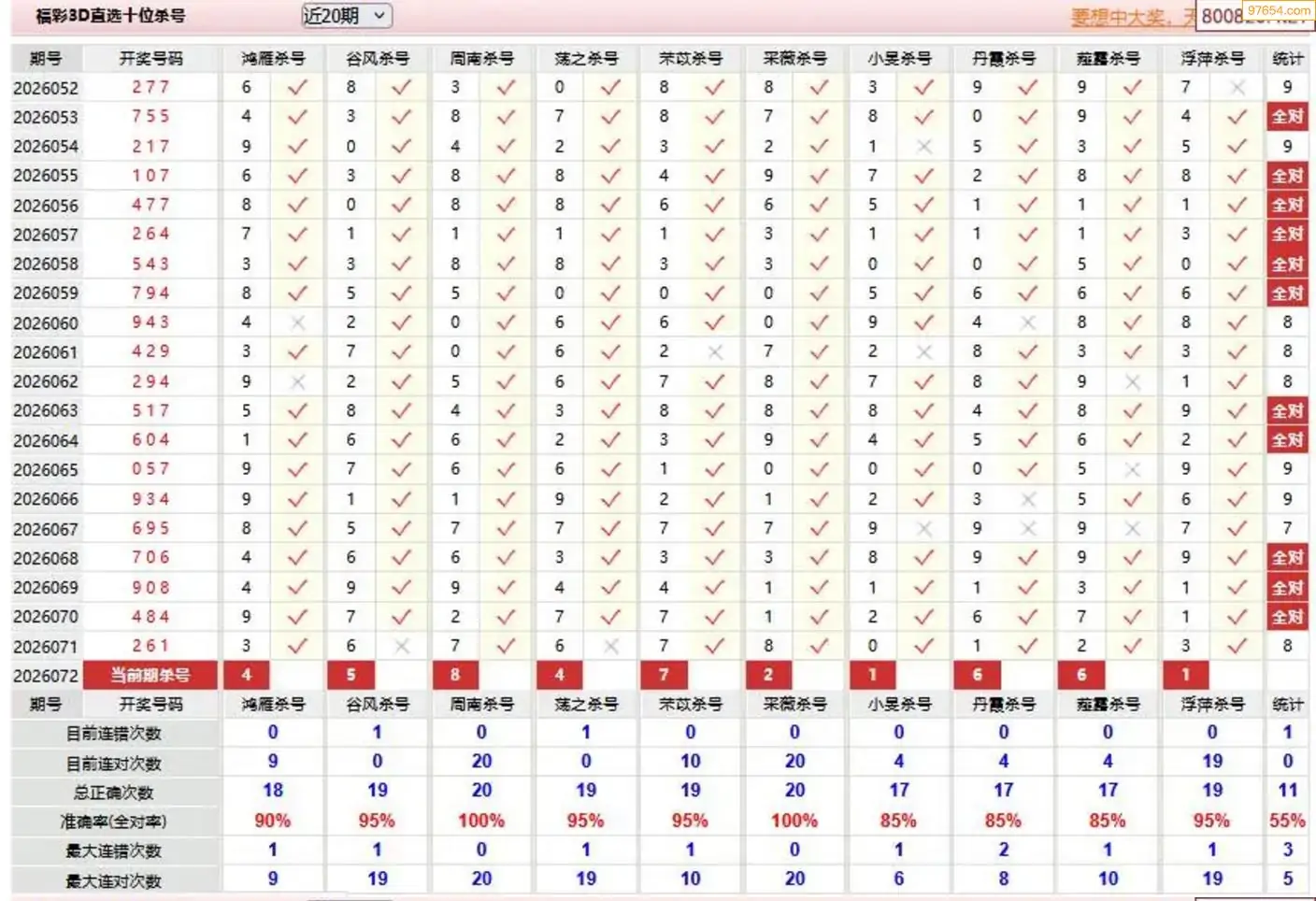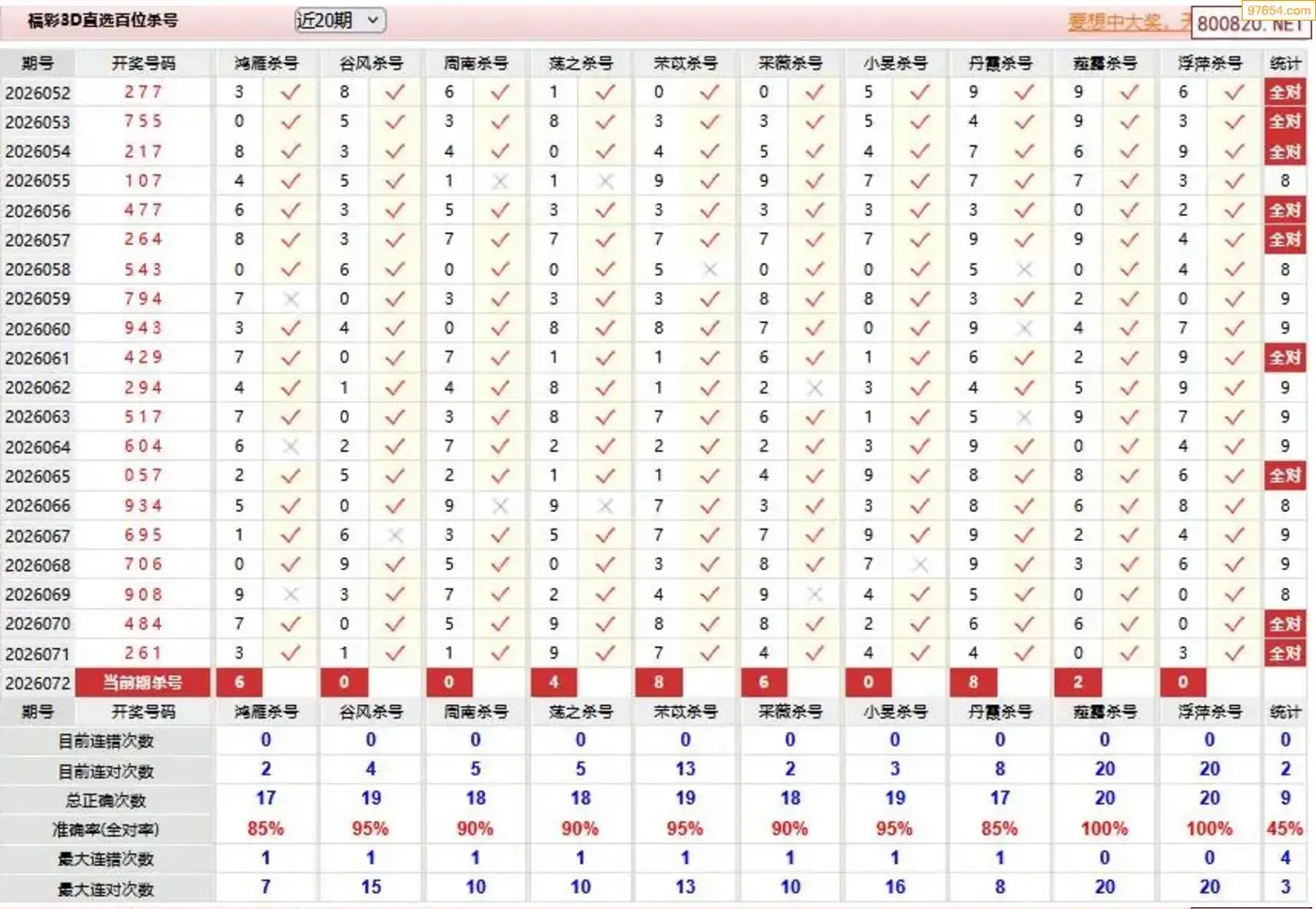 师姐26年072期3D准杀号 7连中
