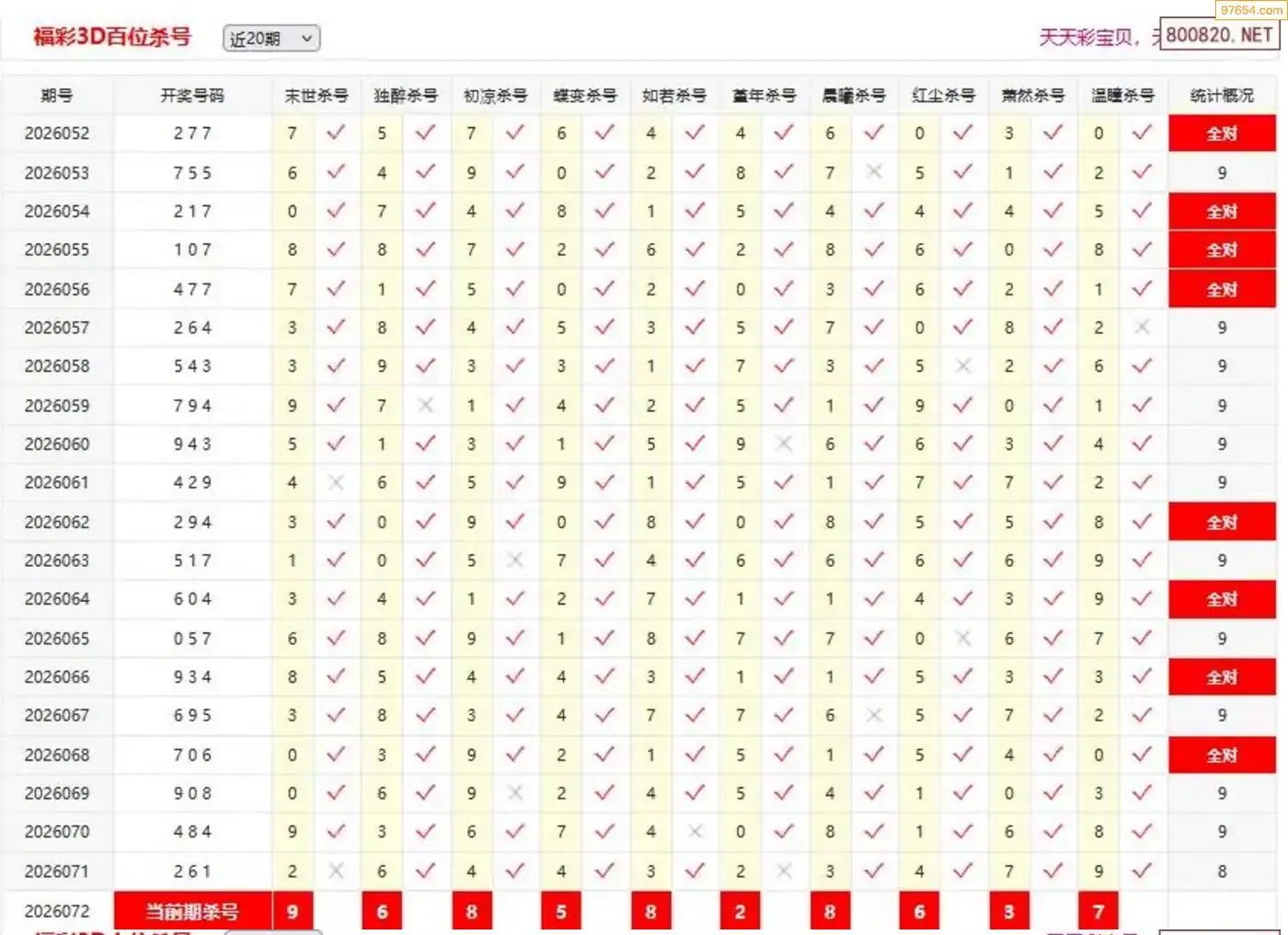 胡八一3d26年073期杀号一胆 10连中