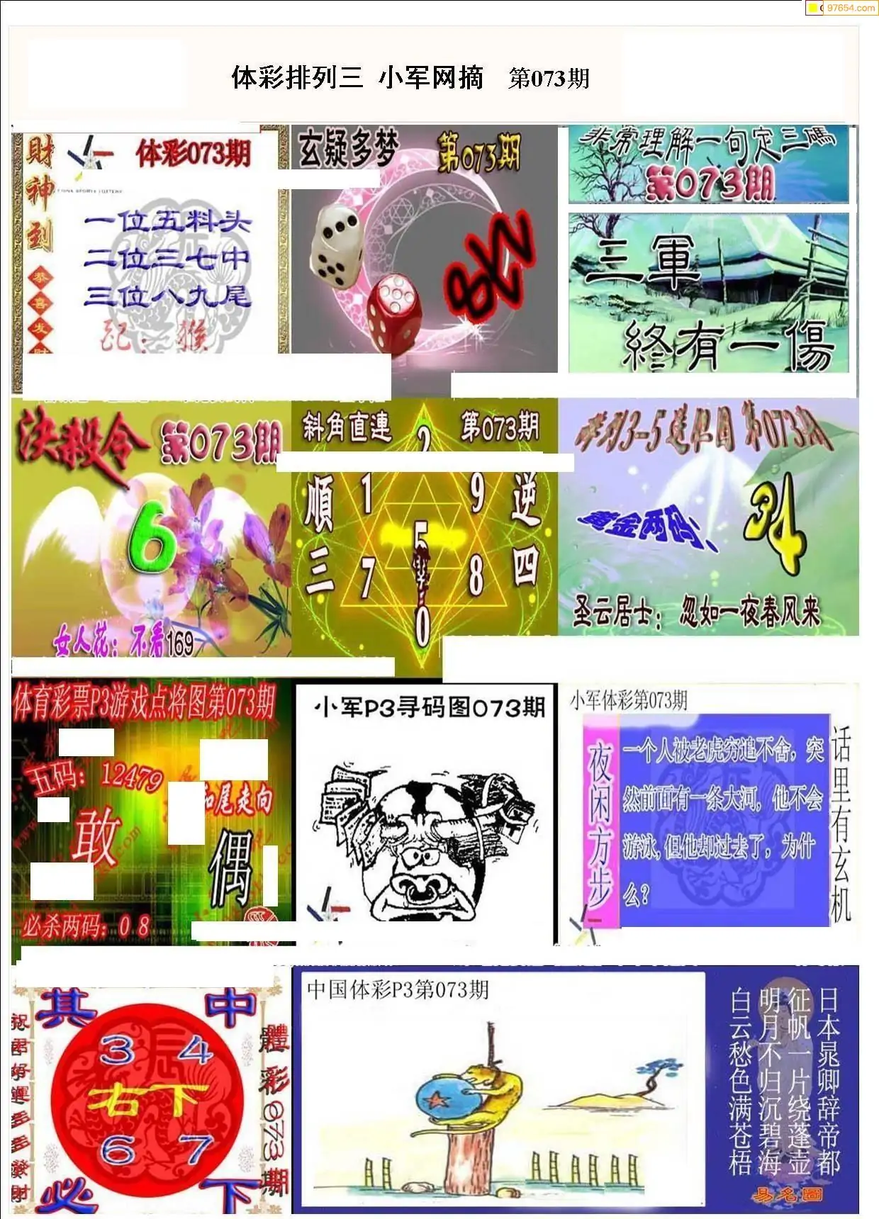 2026073期彩友图迷汇总_图迷汇总排列3图谜汇总考辑牛彩网