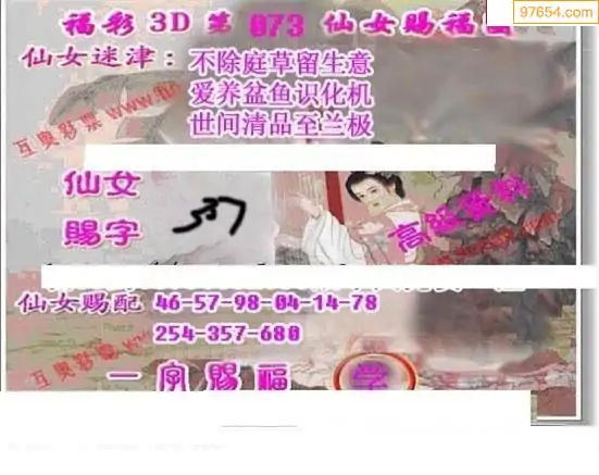 26年073期福彩仙姑综合图