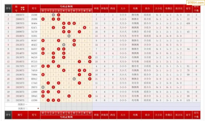 073期排列三历史号码对比图+数据走势分析