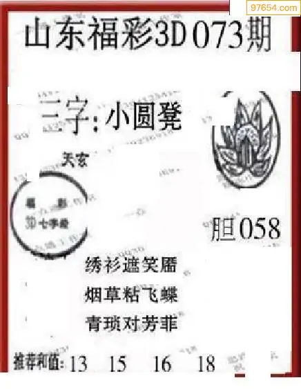 3D26年073期真5188图谜