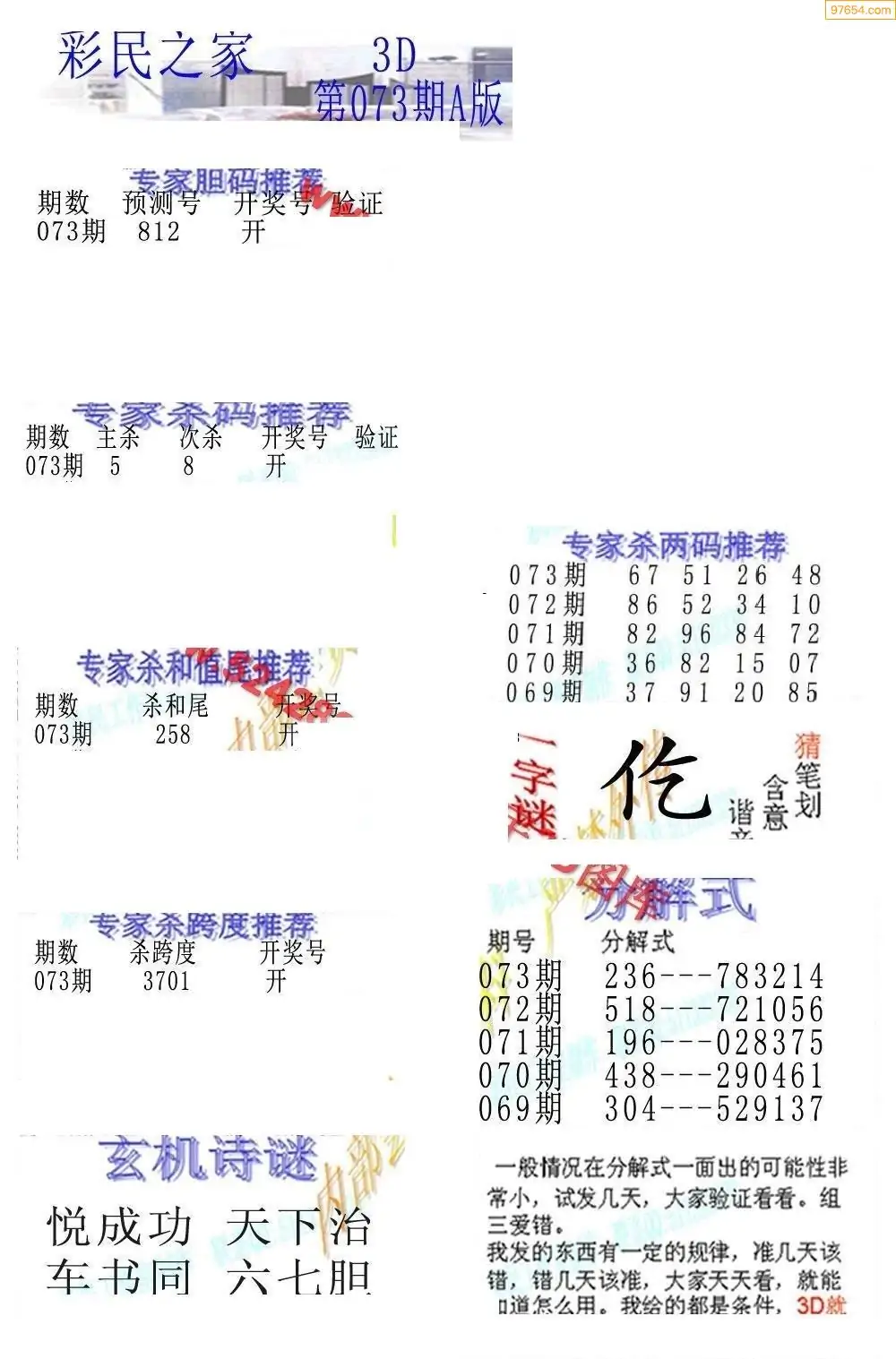 26073期3D彩民各类资料A版