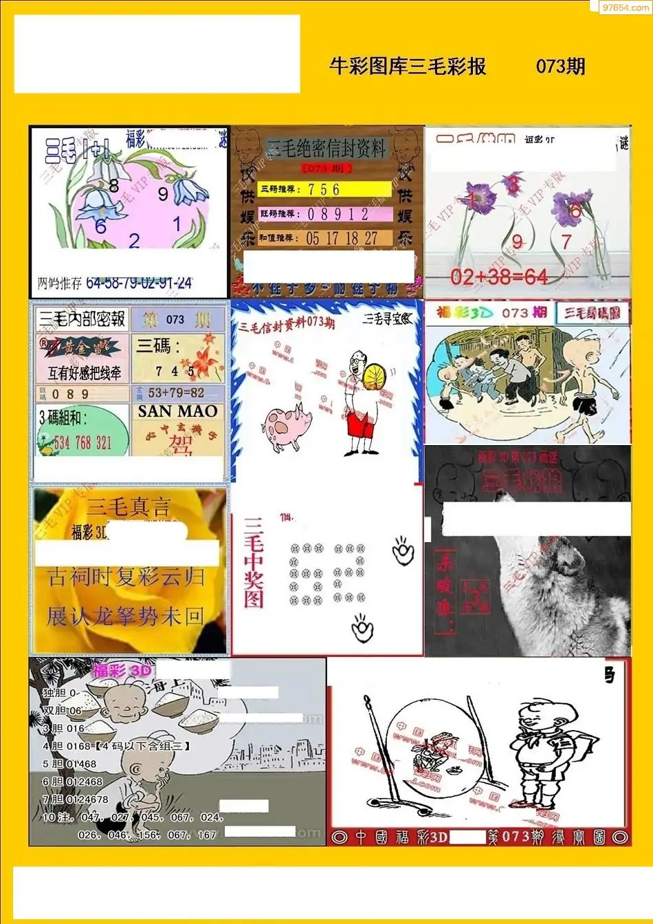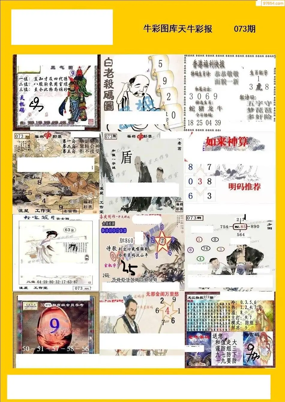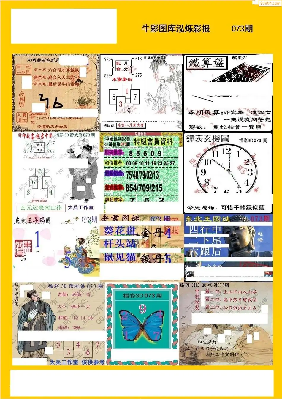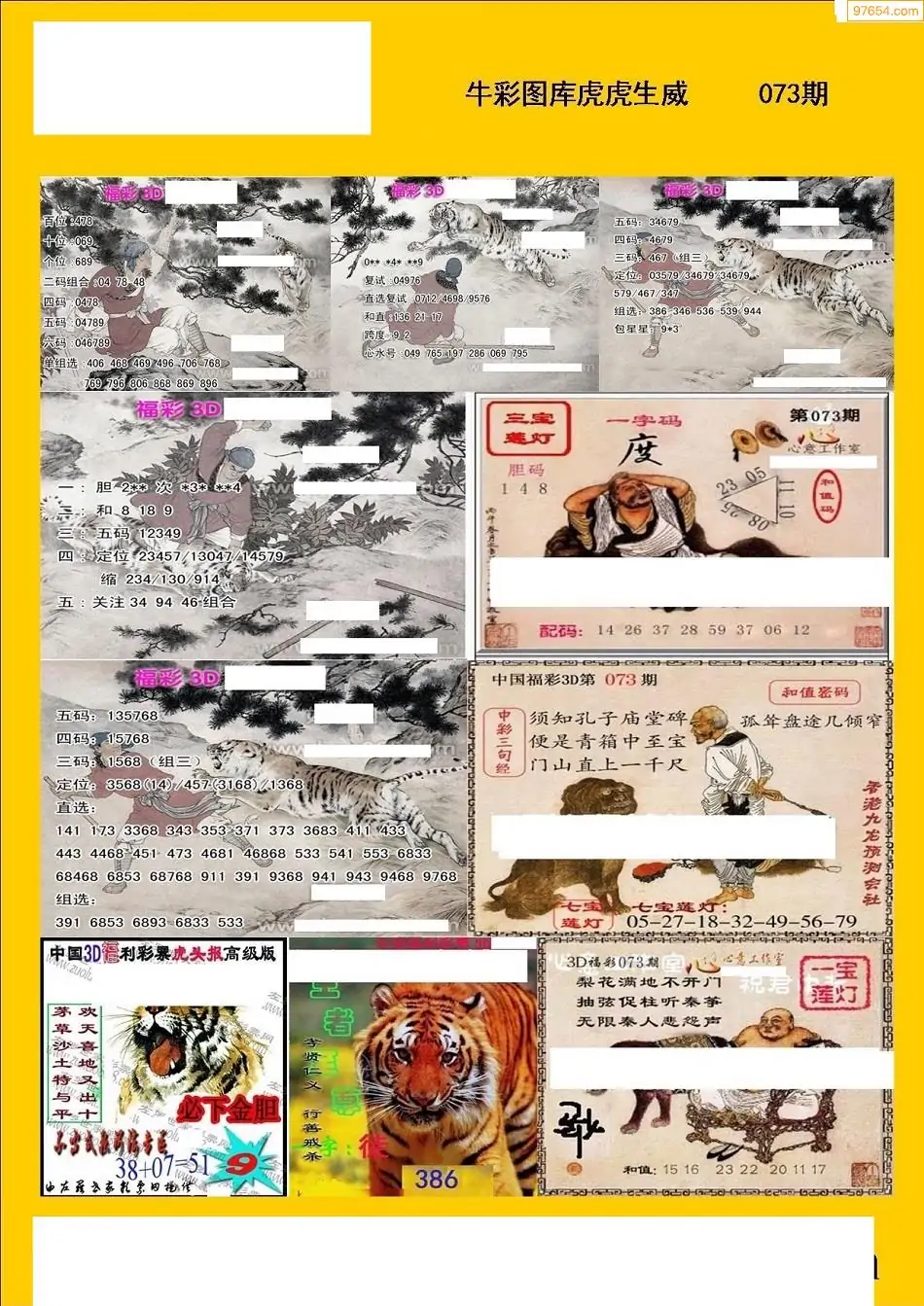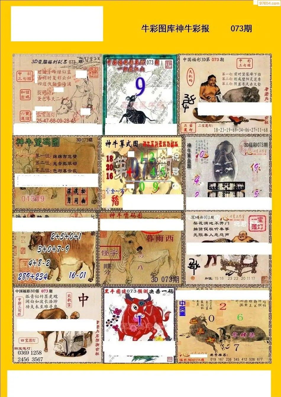 福彩3D073期天牛彩吧套图整合总汇