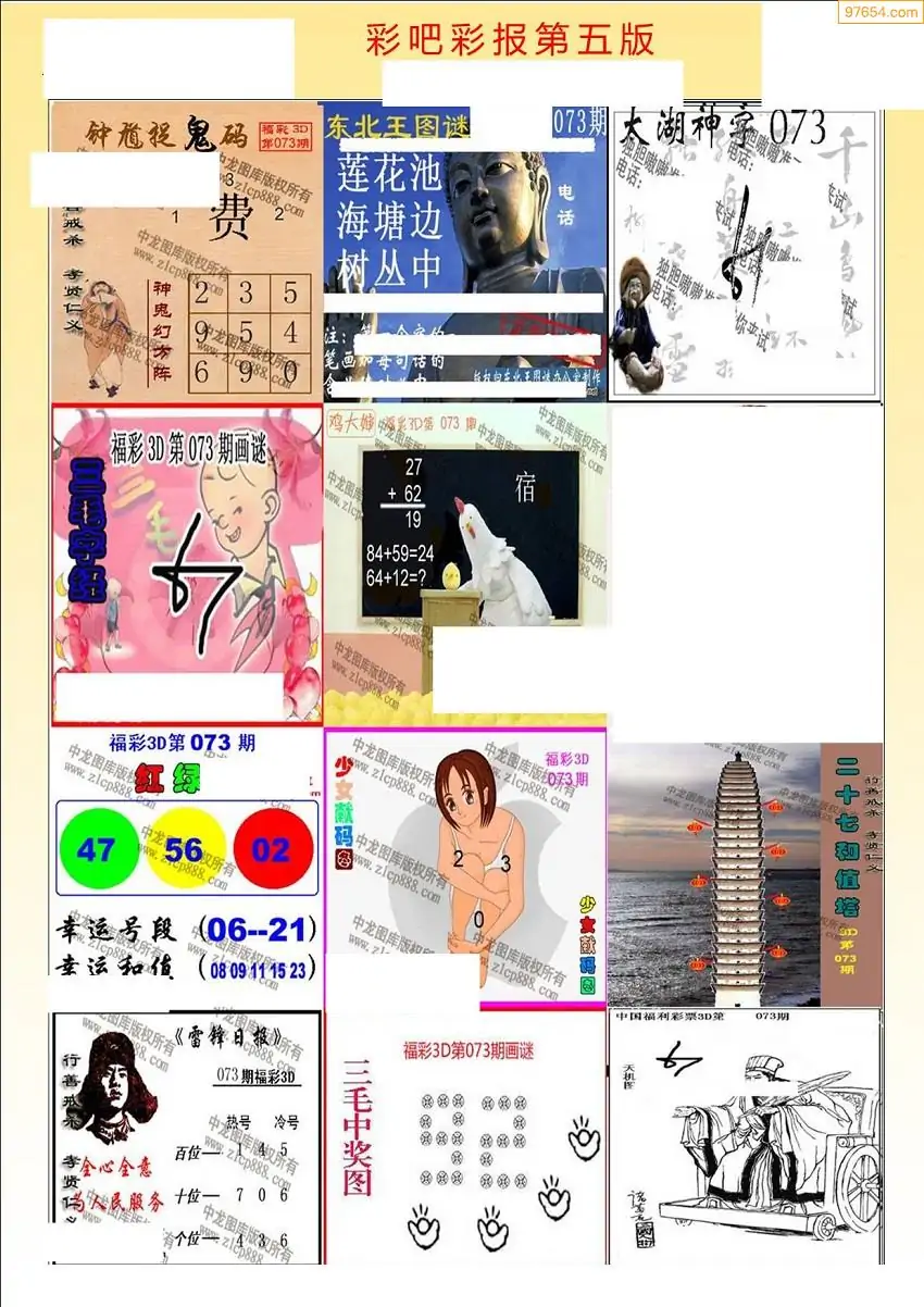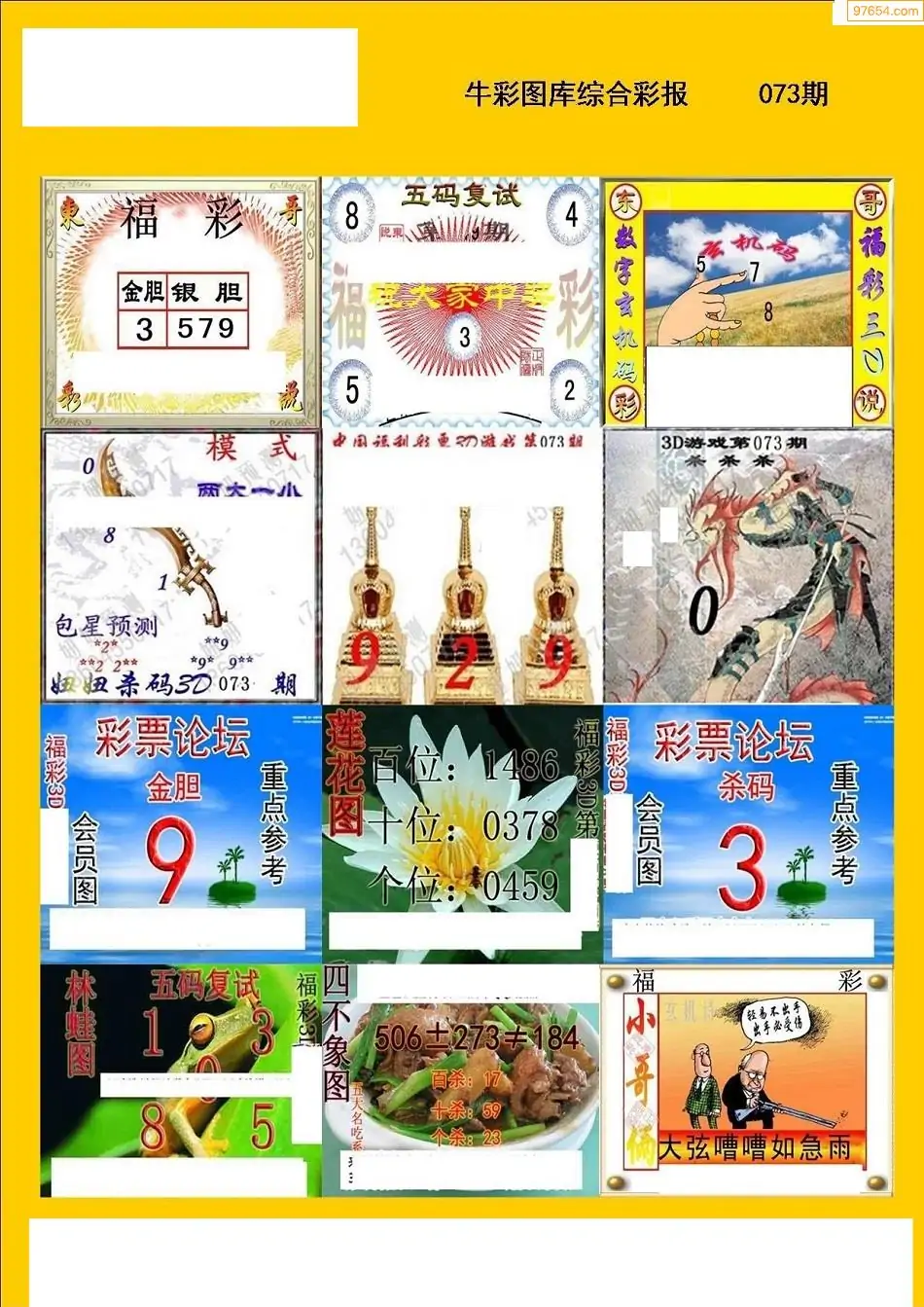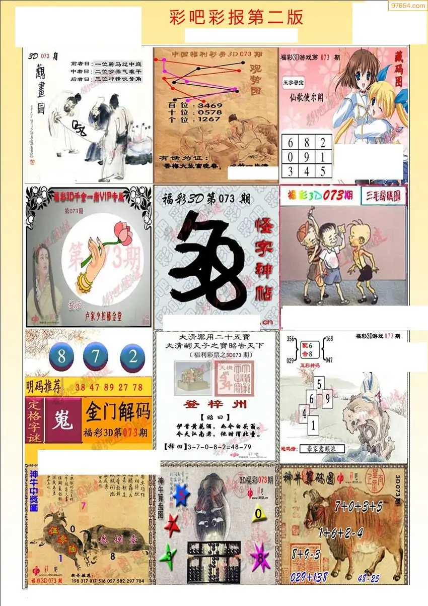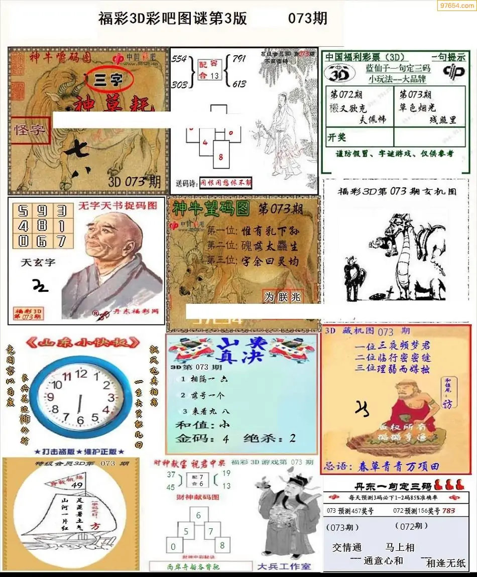 073期3D牛彩预测报+彩吧字谜报