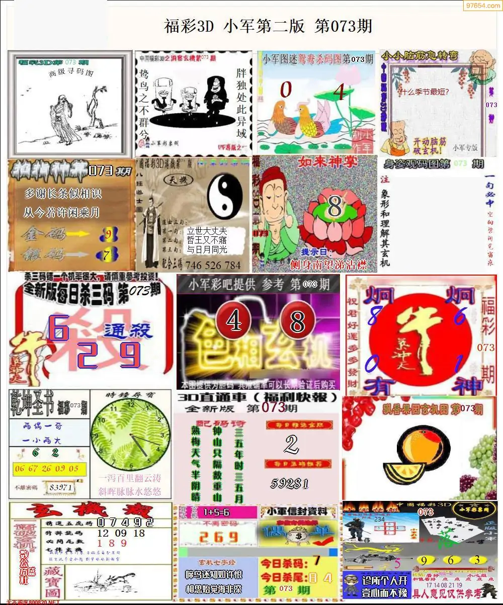 073期3D牛彩预测报+彩吧字谜报