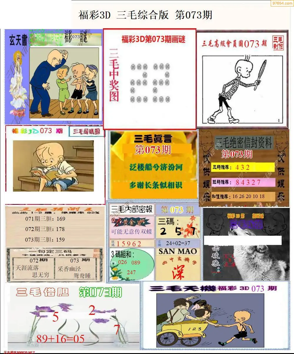 福彩3D073期天牛彩吧套图整合总汇