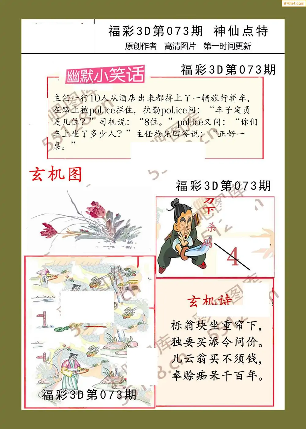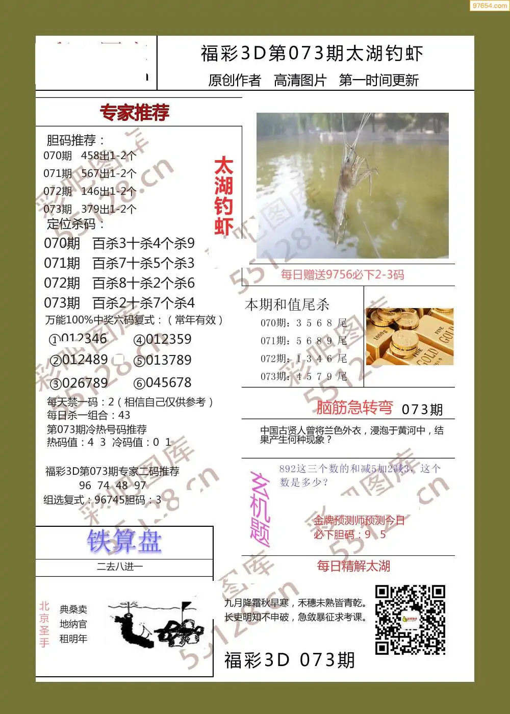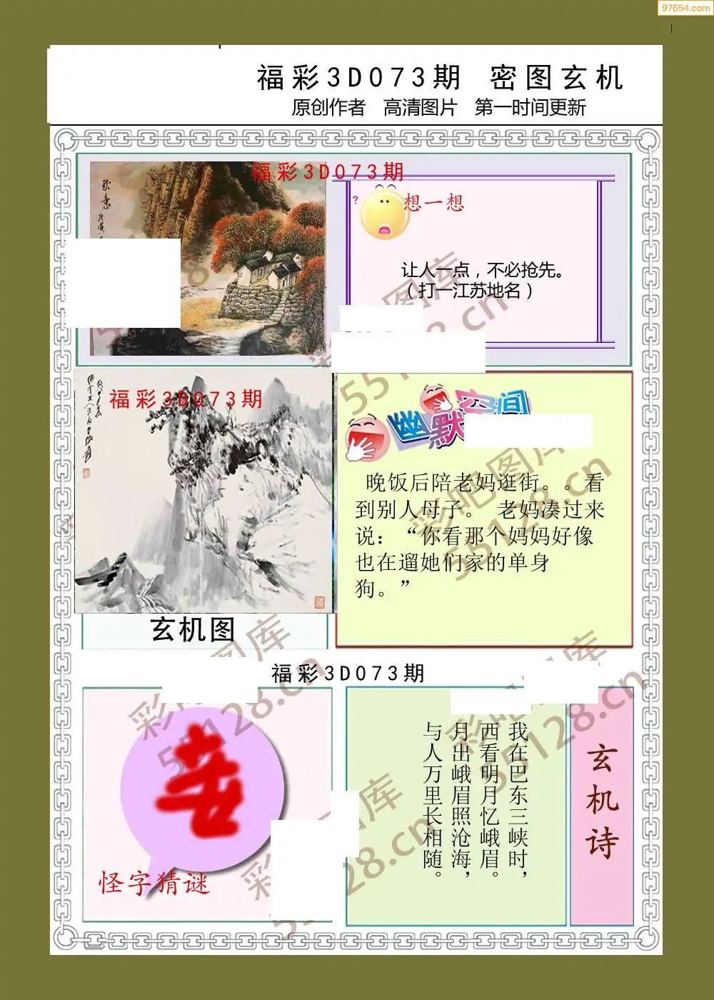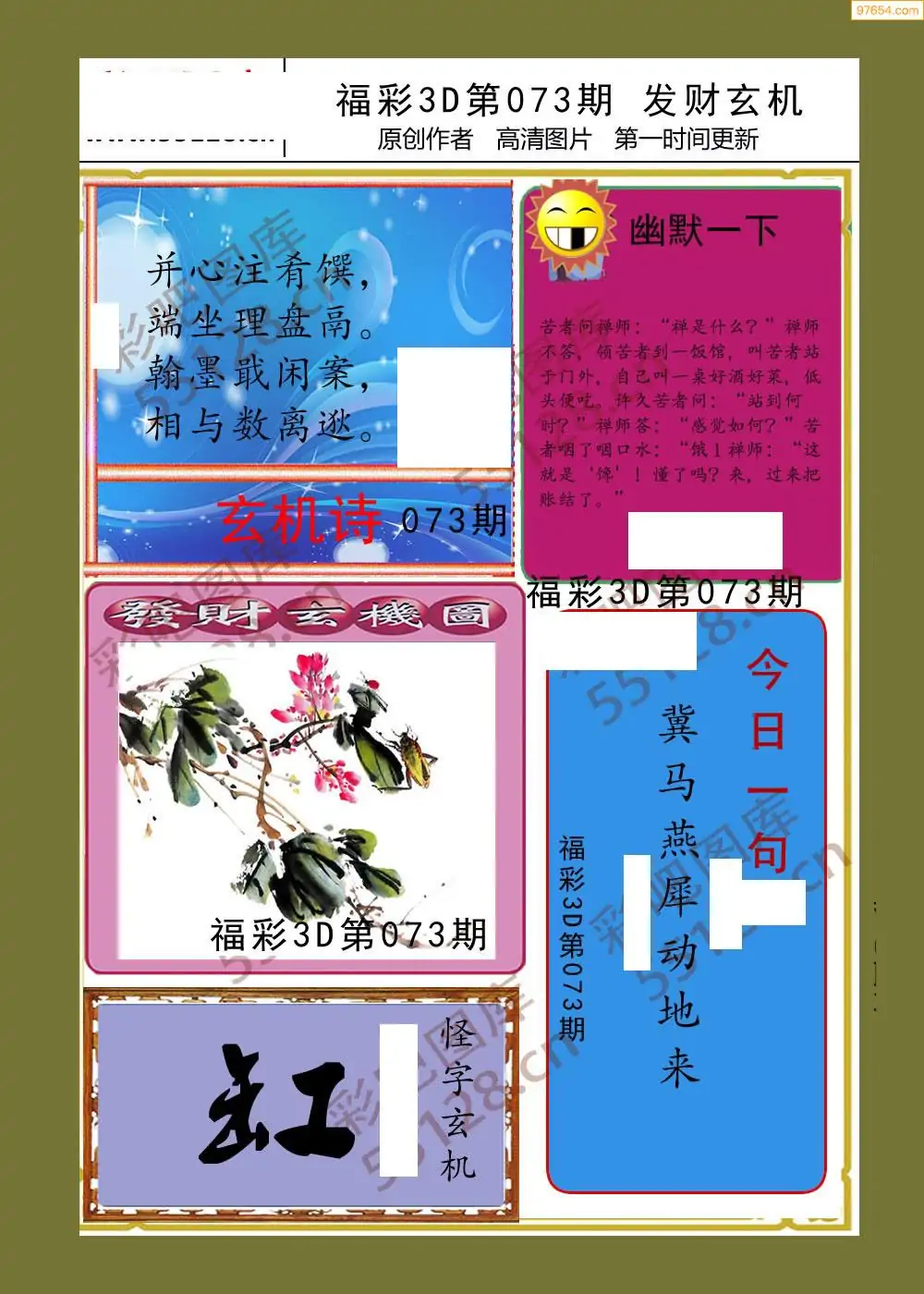 福彩3D073期天牛彩吧套图整合总汇