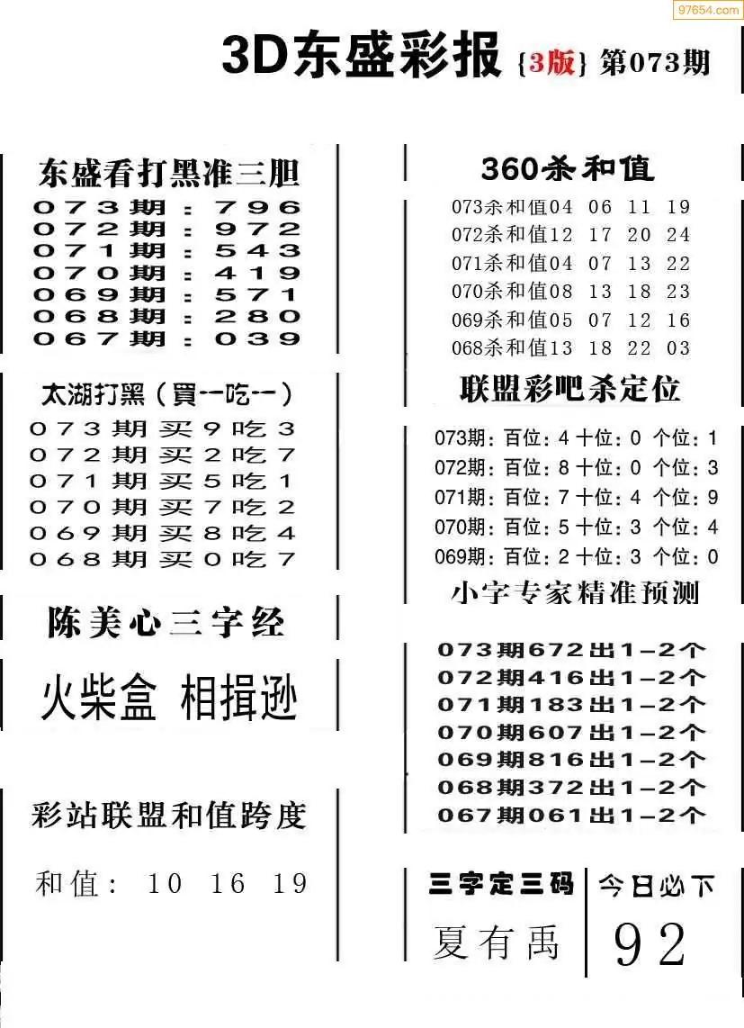 073期3D牛彩预测报+彩吧字谜报