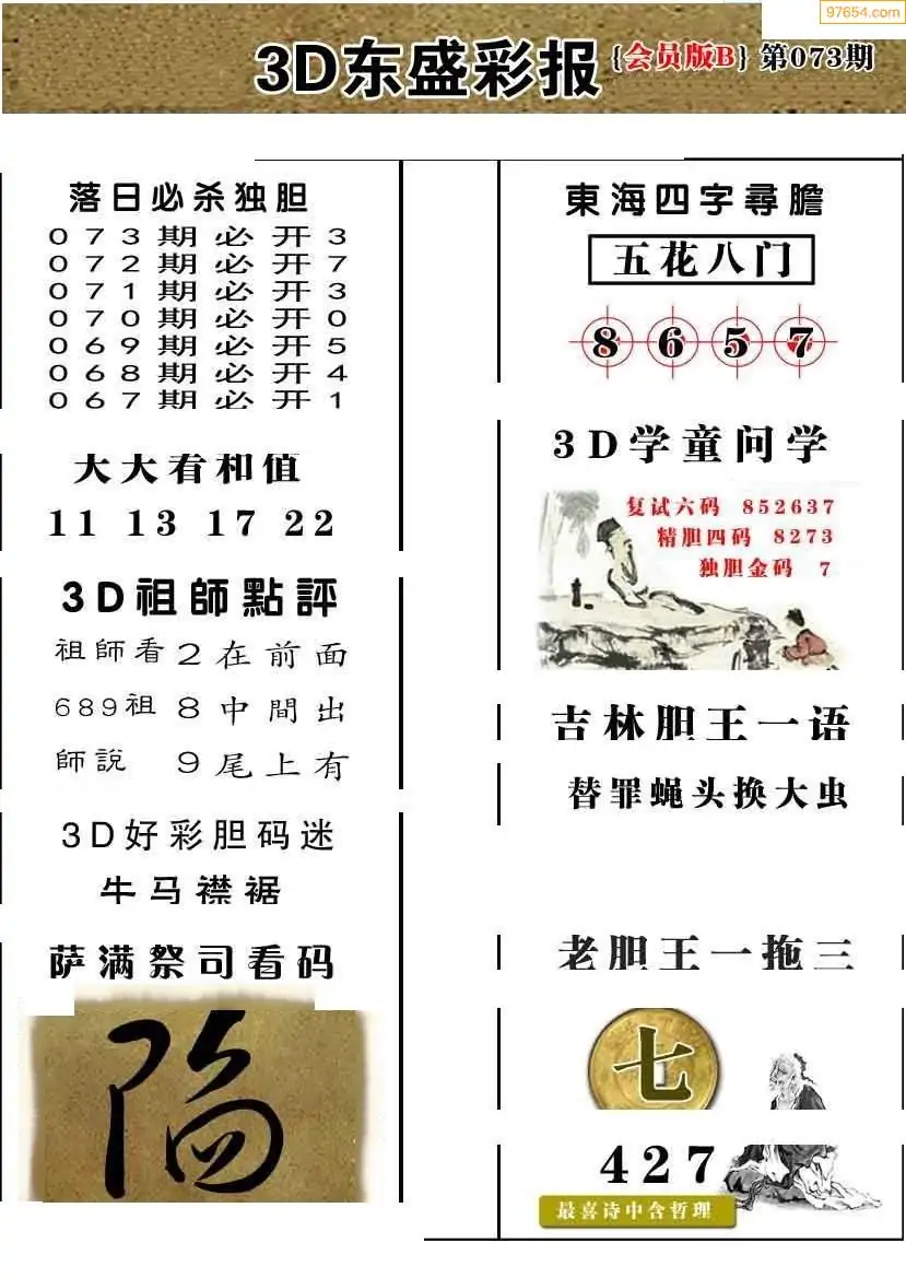 26073期今日3d三毛四版+东盛会员报
