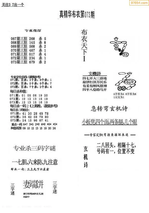 073期真版布衣神算专家推荐