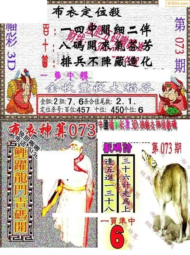 073期3D彩吧图库精华布衣图123456分享