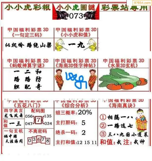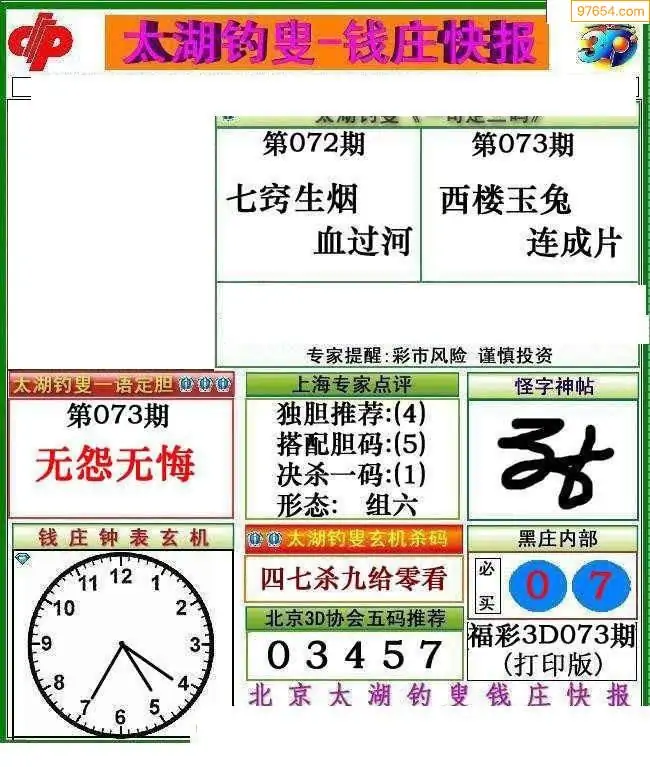 073期3D牛彩预测报+彩吧字谜报