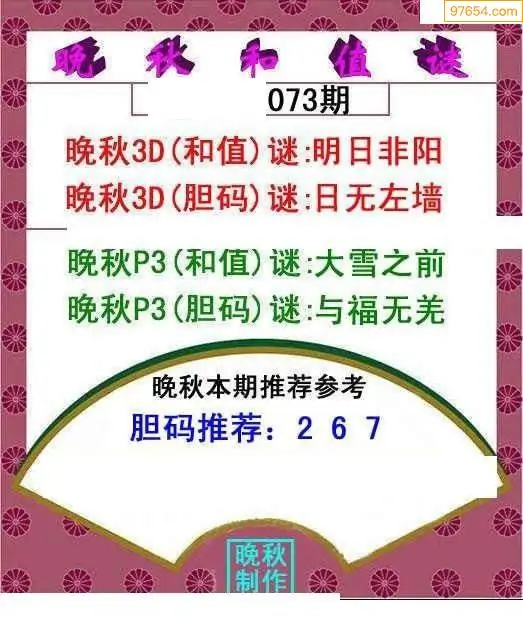 26073期晚秋和值谜胆码推荐