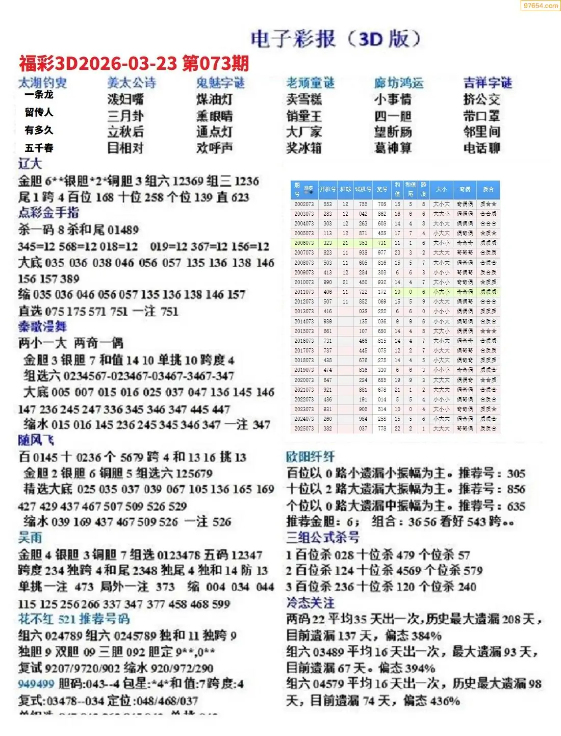 26年073期3D各板块资料整合汇总