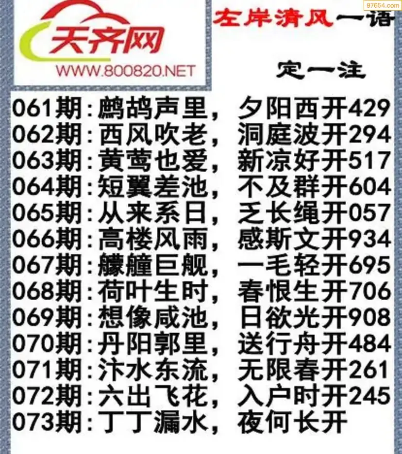 福彩3d左岸清风26年073期一语定一注
