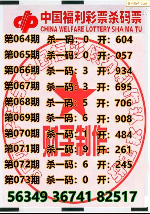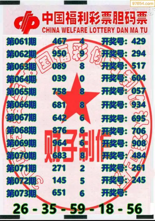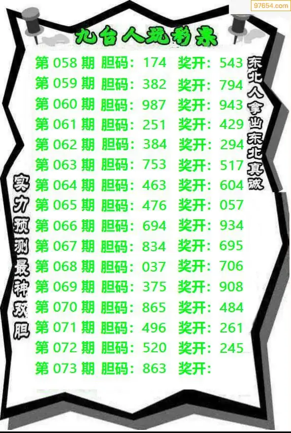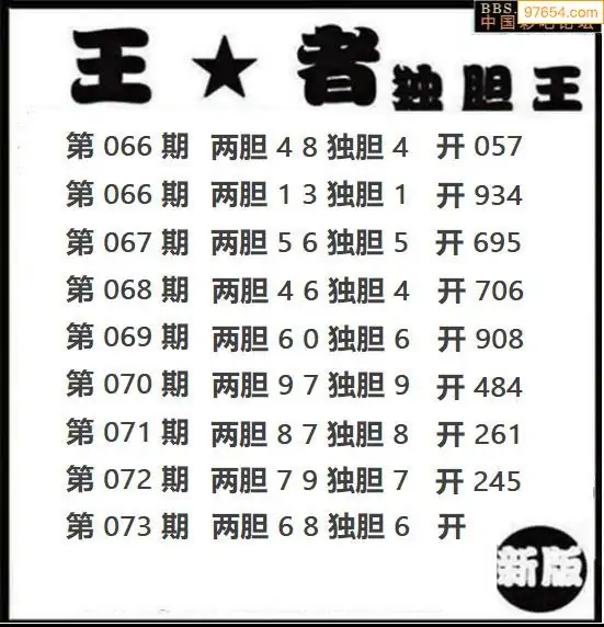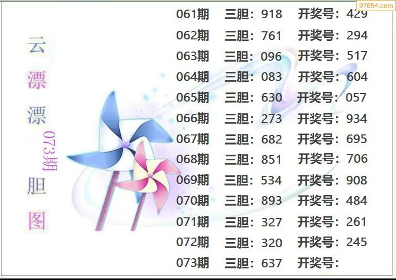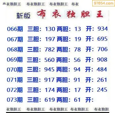 073期97654本站收集胆码出号预测