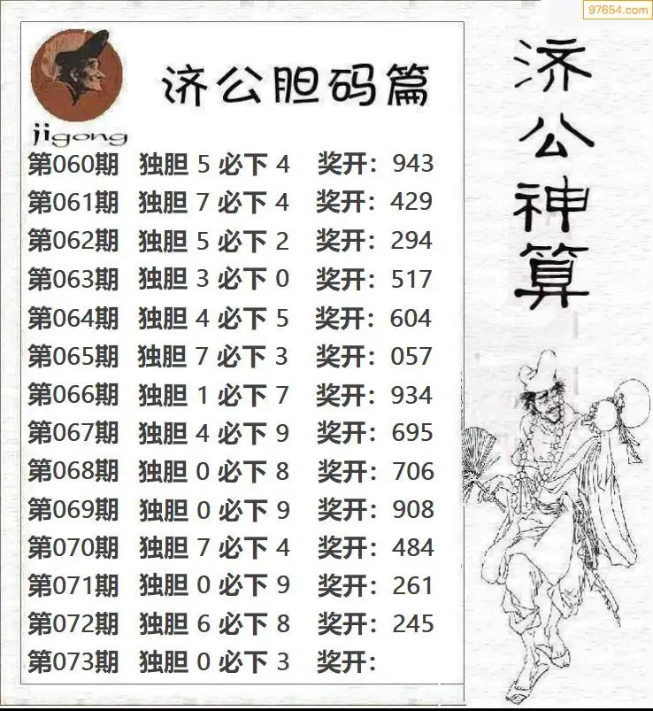 26073期杨麻子_福彩胆码计算方法