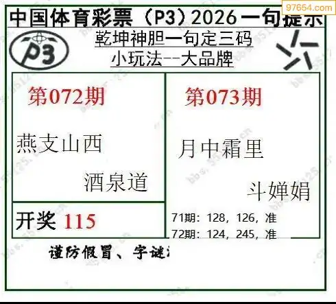26年073期乾坤一句排三定码图