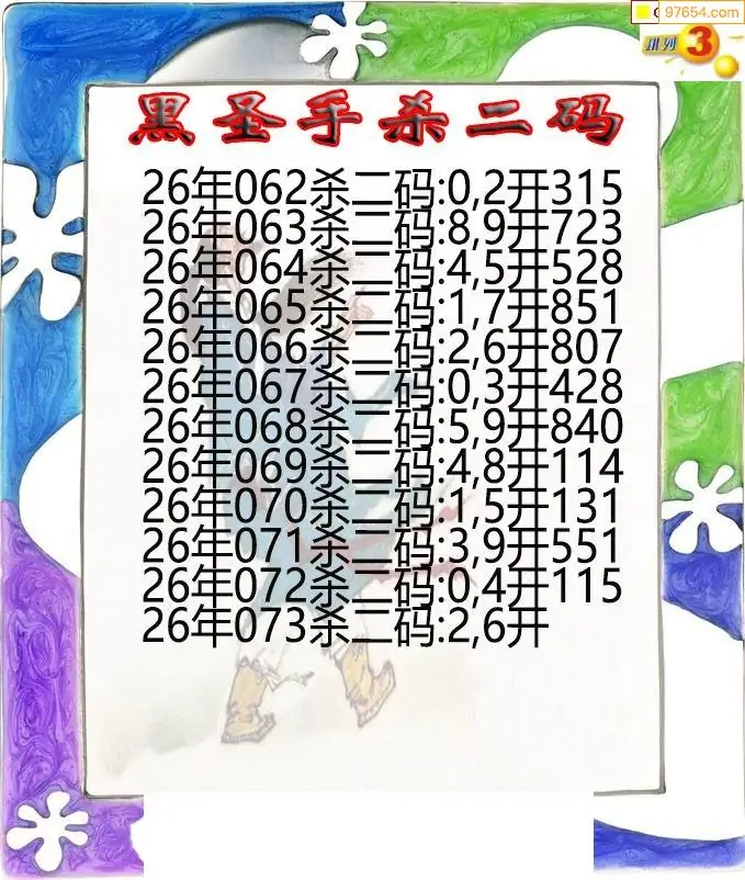 26年073期黑圣手排3杀二码图迷