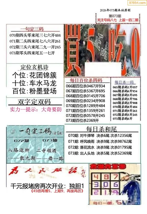 (9)26年073期当期全站杀号定胆图