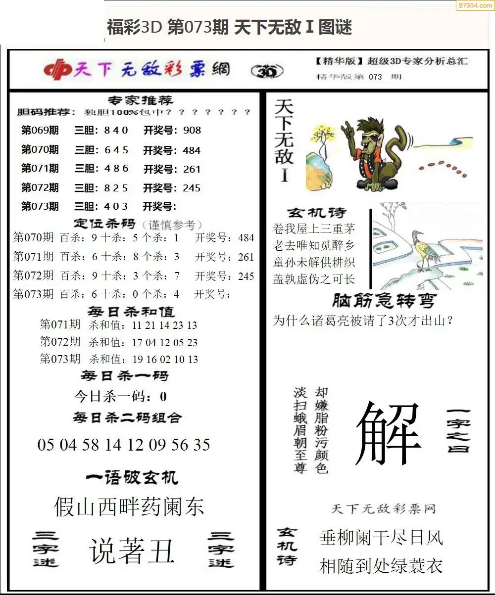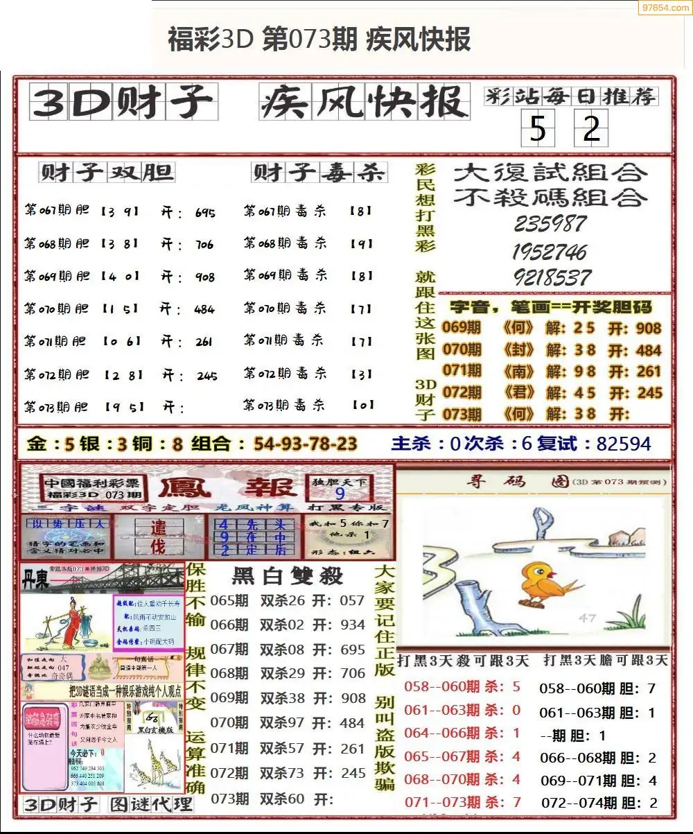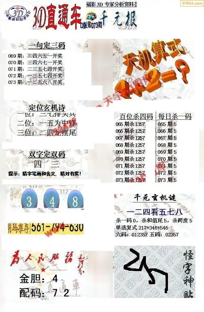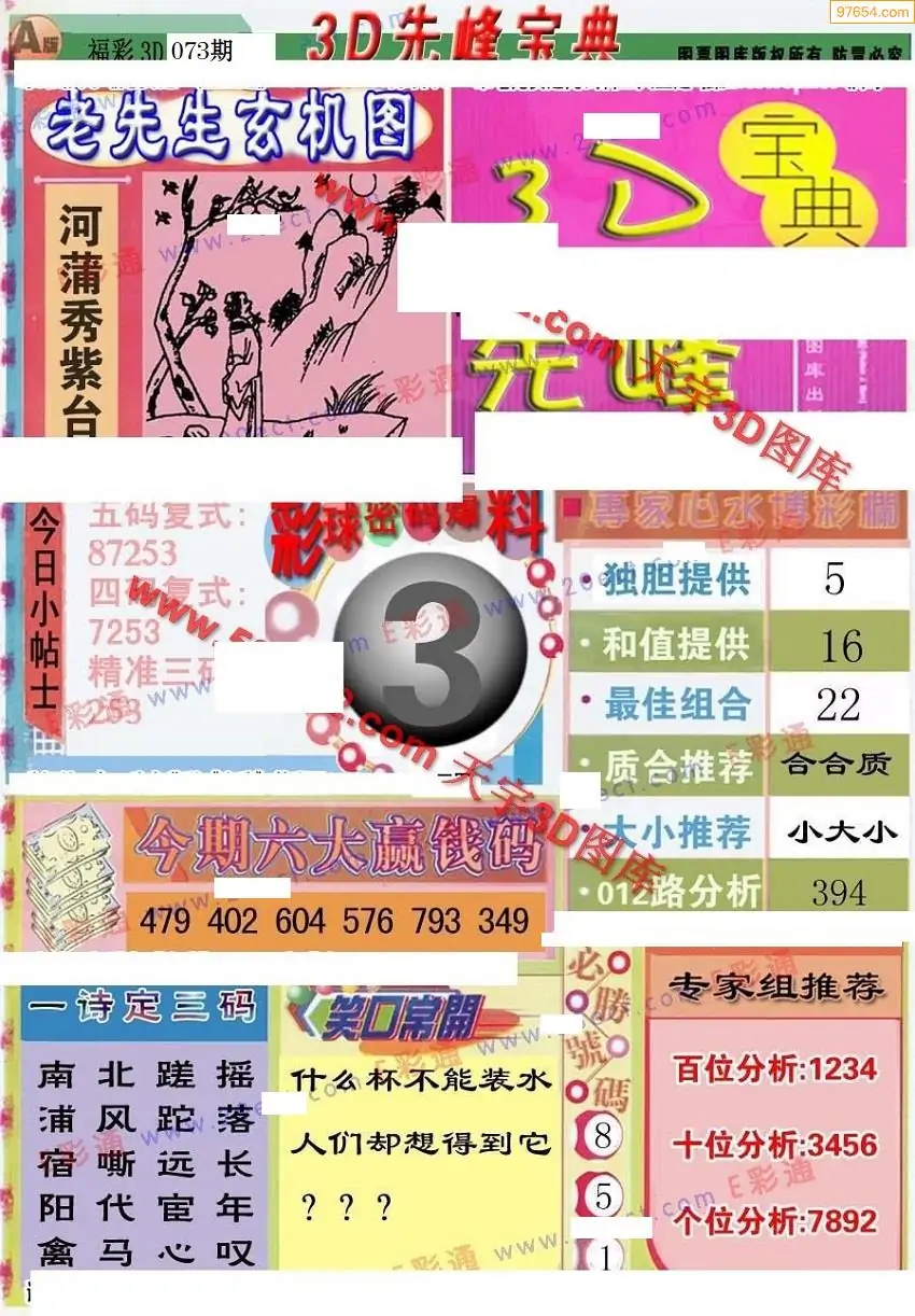 (3)2026073期3D预测总汇全图_福彩3d图谜字谜总汇