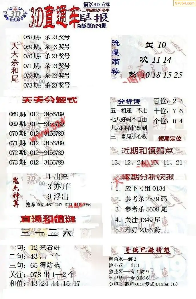 (8)26年073期今日3d各类彩报汇总