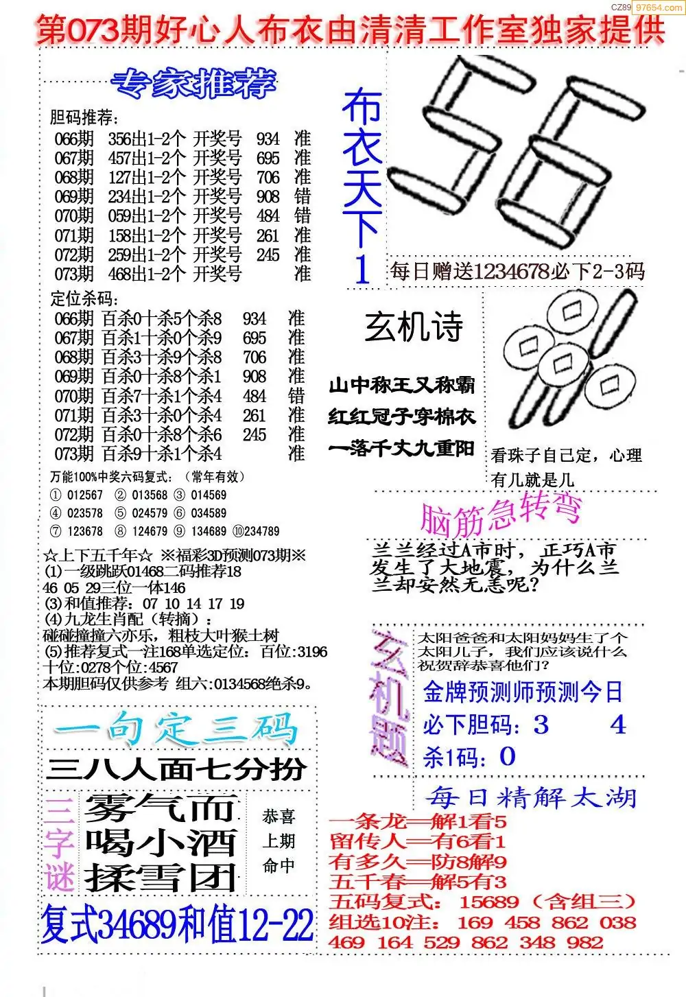 (2)26年073期本期3d图迷汇总_福彩3D图谜总汇图