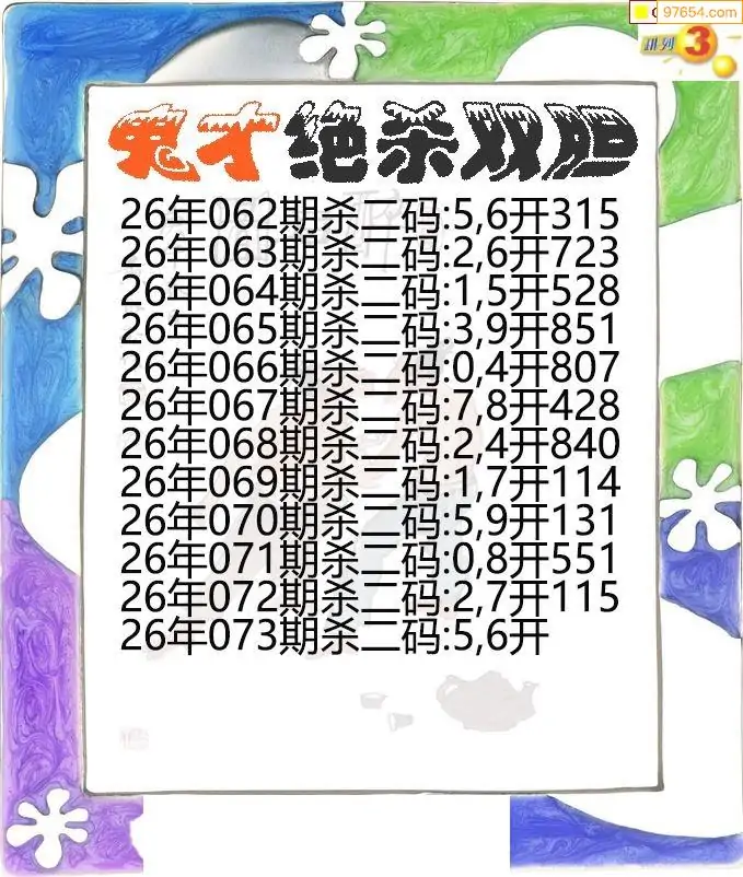 26年073期p3鬼才绝杀双胆图谜