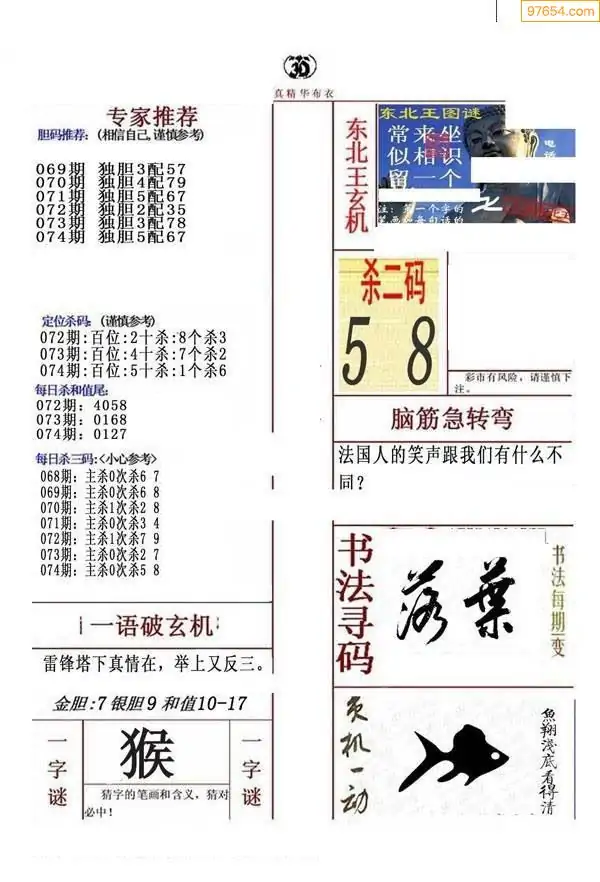 福彩074期3d真精华布衣+布衣早报(转载)