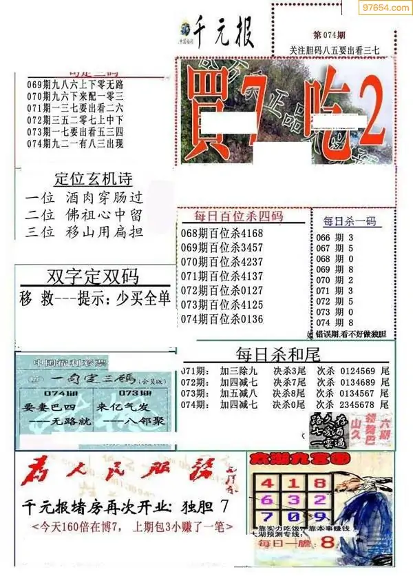 26年074期千元报每日推荐(新版)