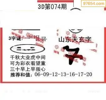 26年074期真天天图3d图迷