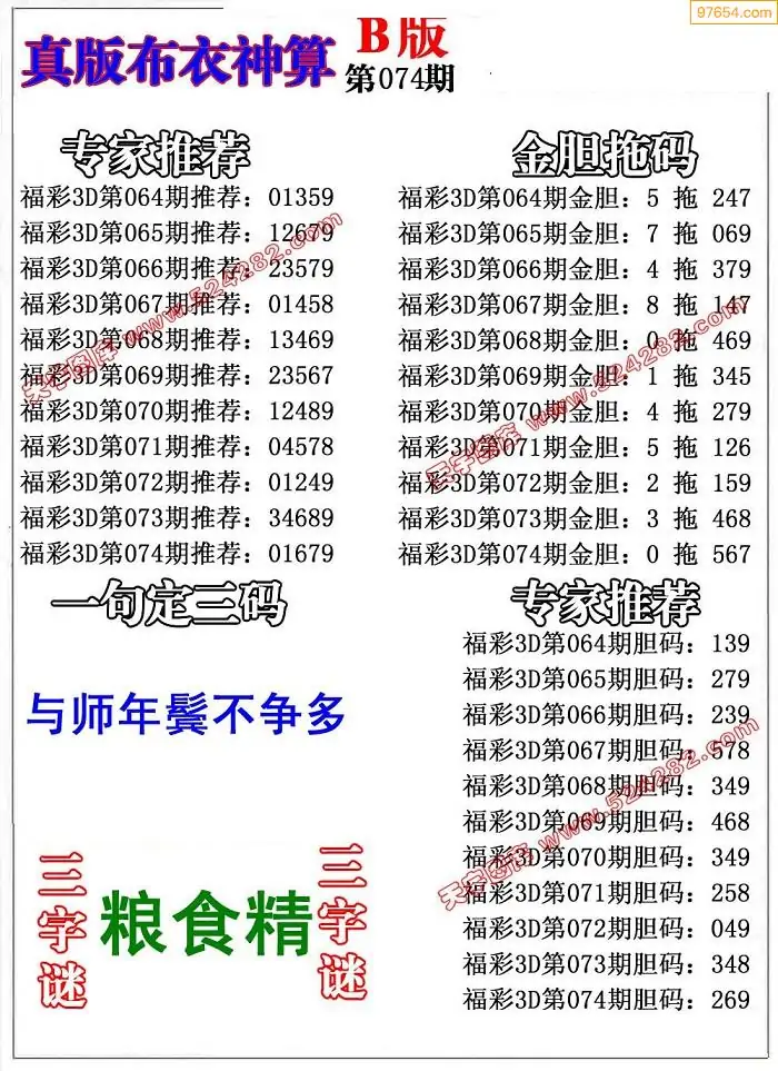 福彩074期3d真精华布衣+布衣早报(转载)