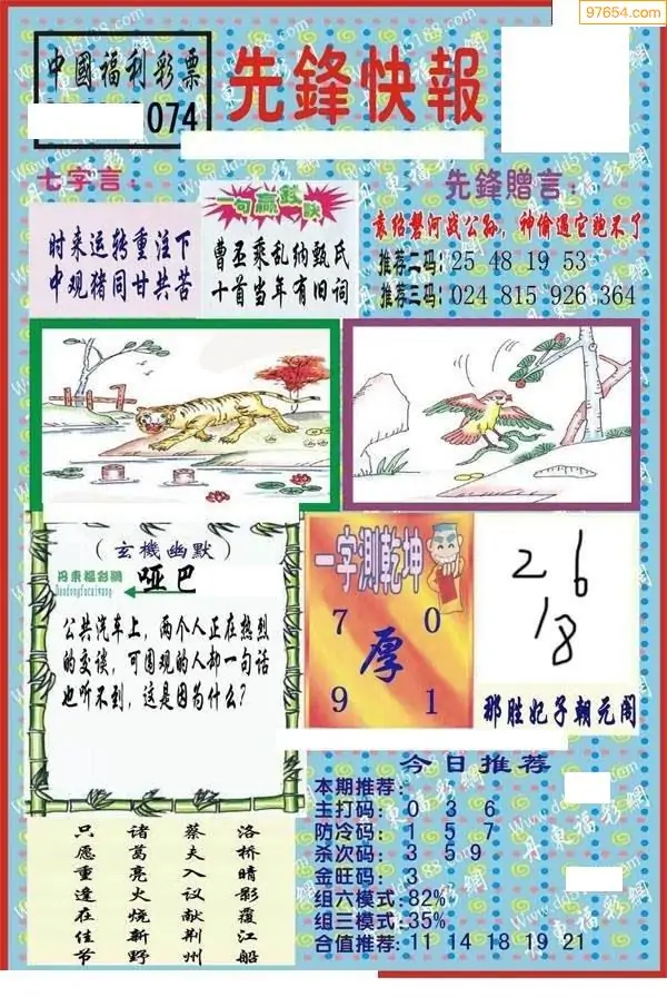 074期3D牛彩预测报+彩吧字谜报