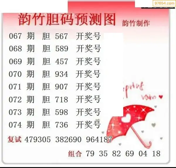 074期97654本站收集胆码出号预测