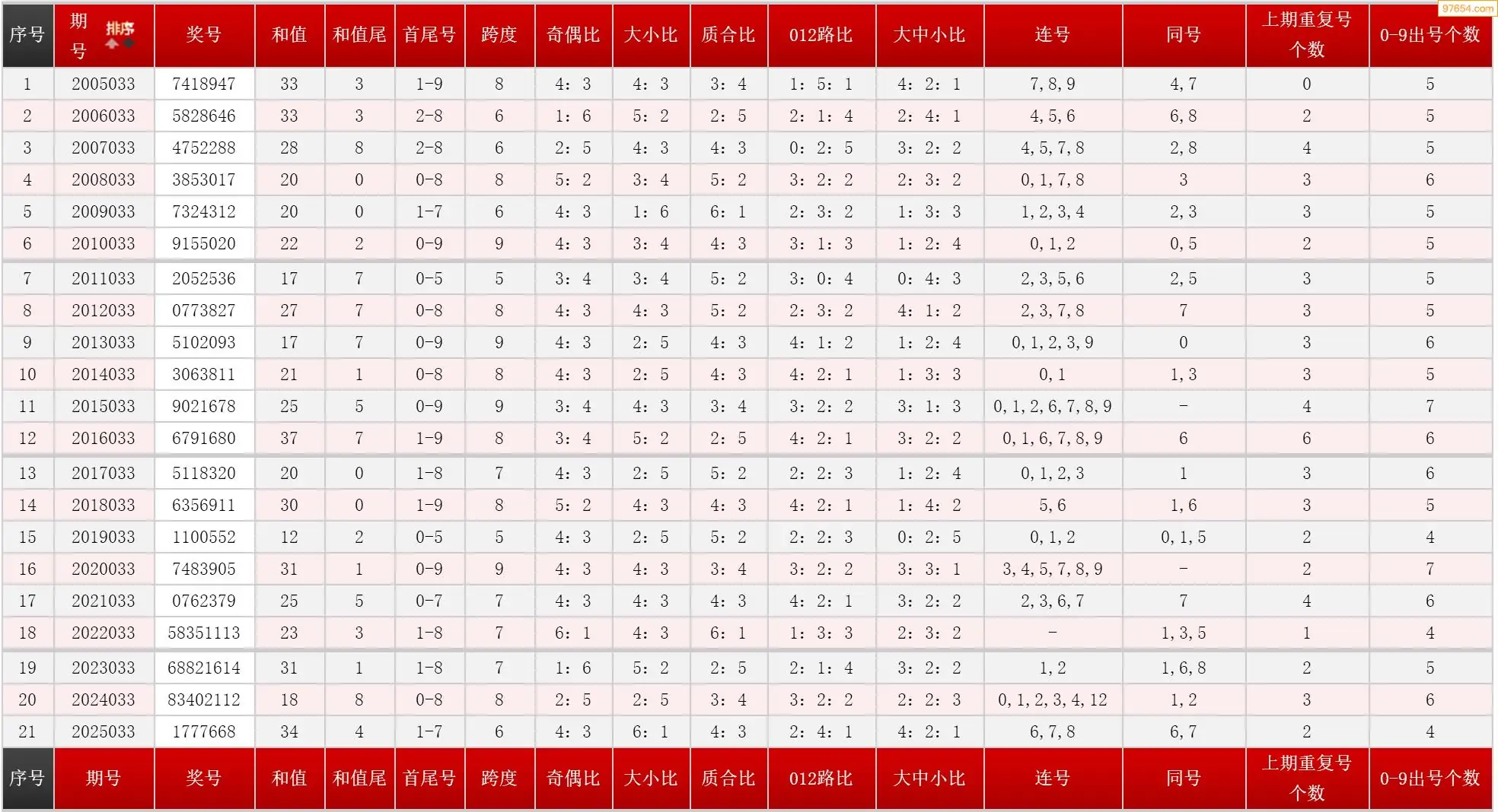 033期七星彩历史同期图表+走势图