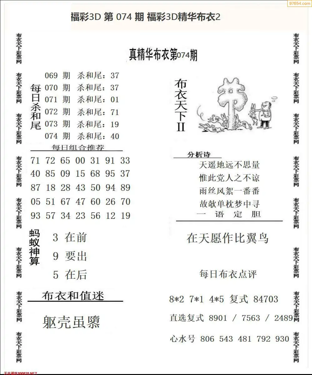 福彩074期3d真精华布衣+布衣早报(转载)