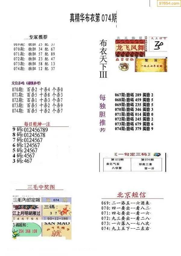 (2)26年074期本期3d图迷汇总_福彩3D图谜总汇图