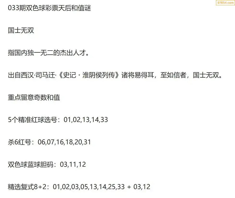 033期牛彩双色球字迷诗迷汇总(天中整理)