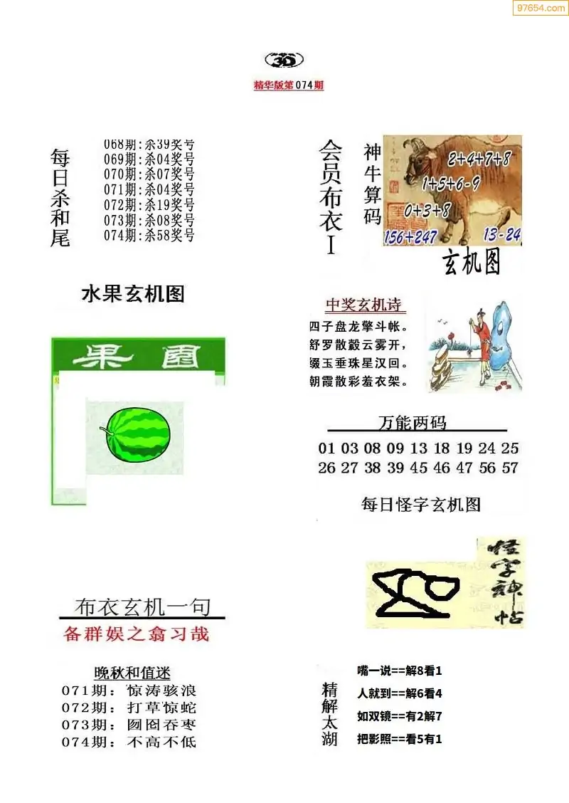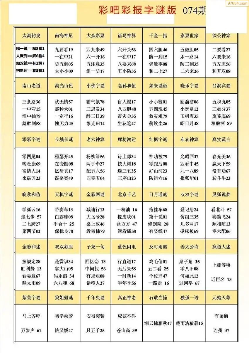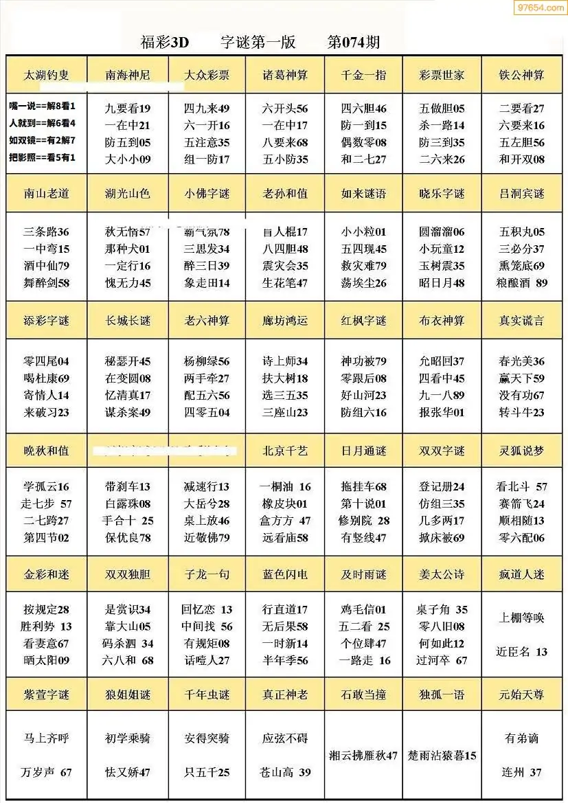 (5)26年074期福彩字谜图谜总汇
