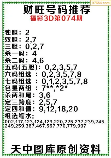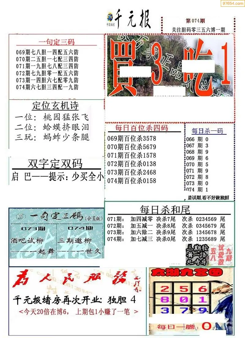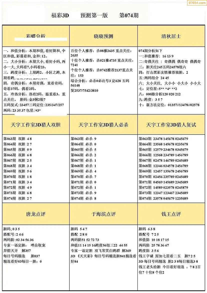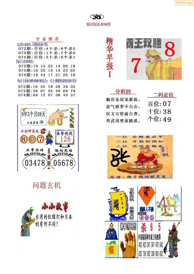 (8)26年074期今日3d各类彩报汇总