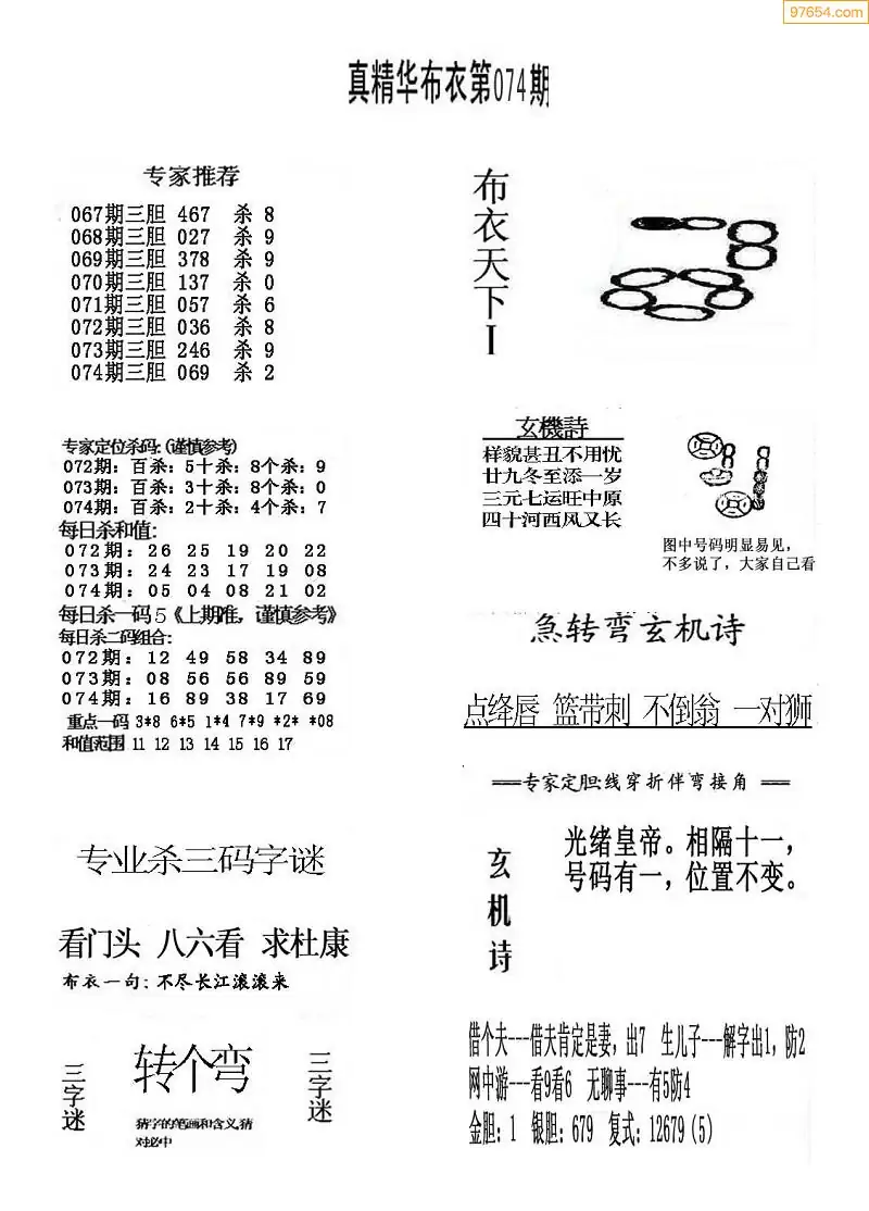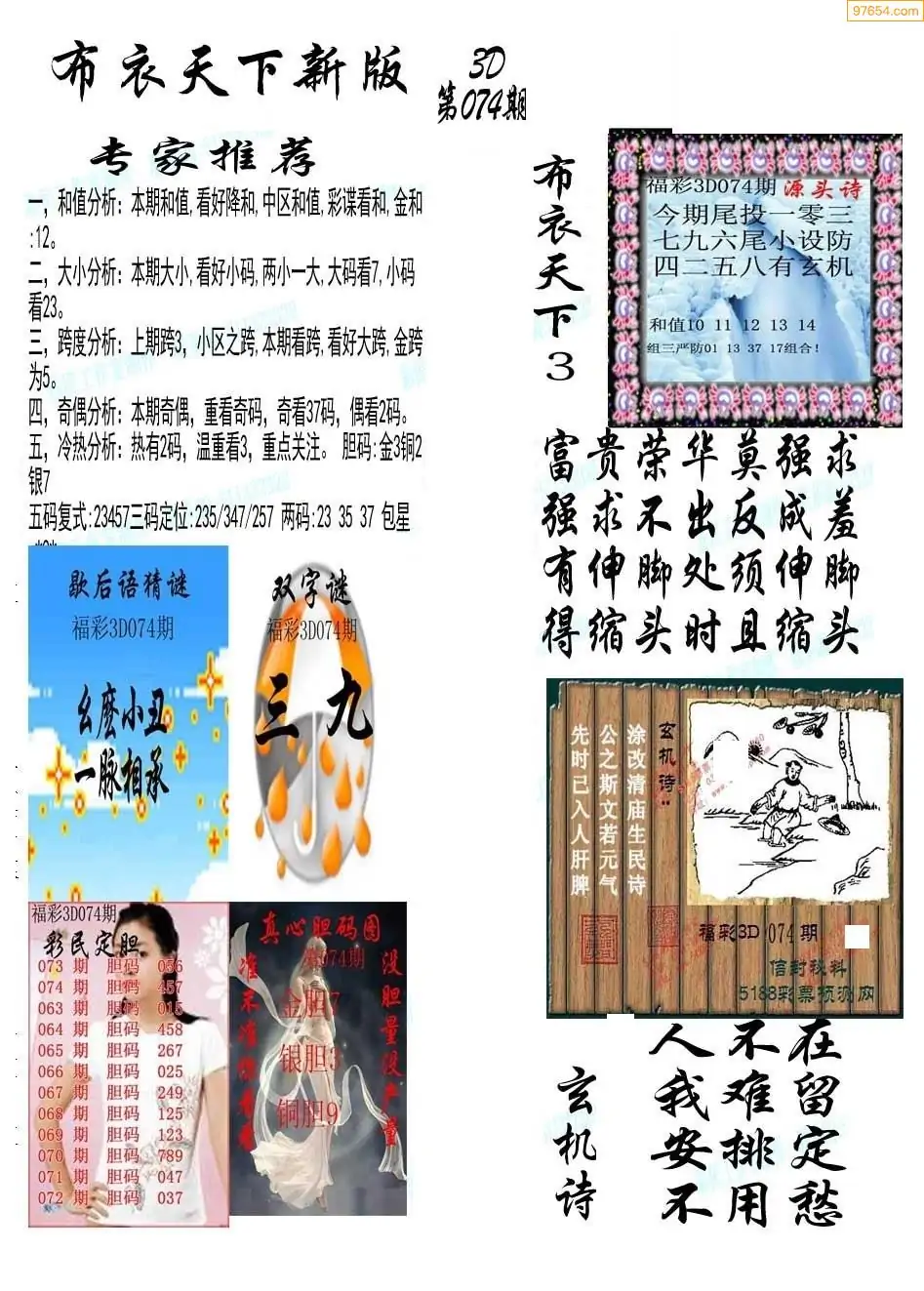 (2)26年074期本期3d图迷汇总_福彩3D图谜总汇图