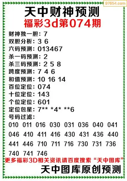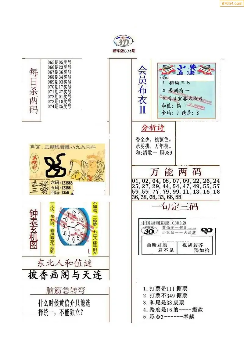 (3)2026074期3D预测总汇全图_福彩3d图谜字谜总汇