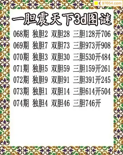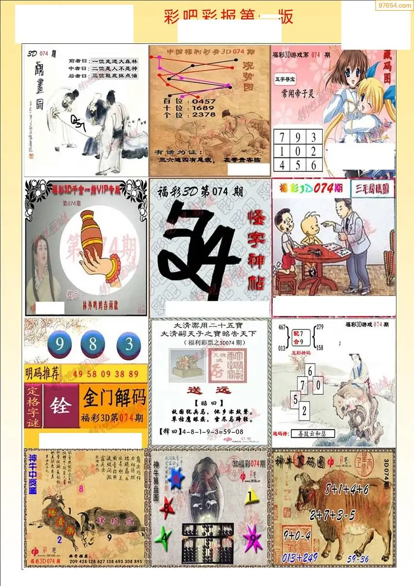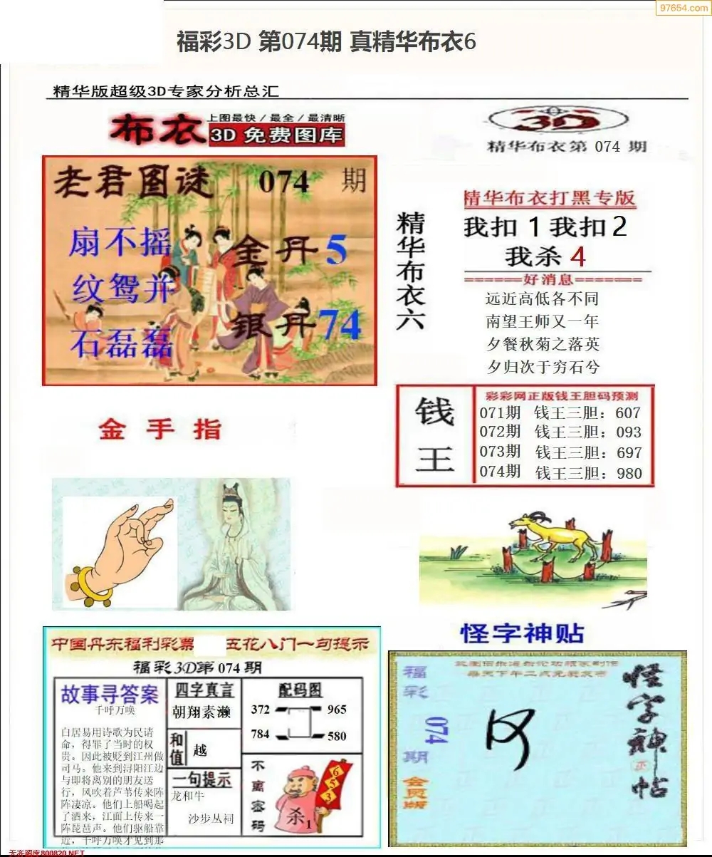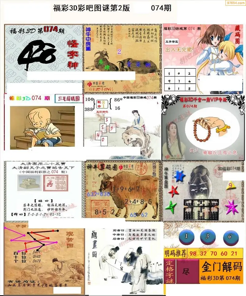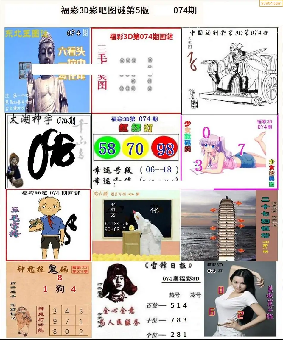 (3)2026074期3D预测总汇全图_福彩3d图谜字谜总汇