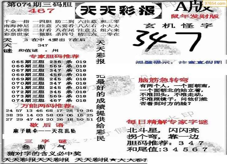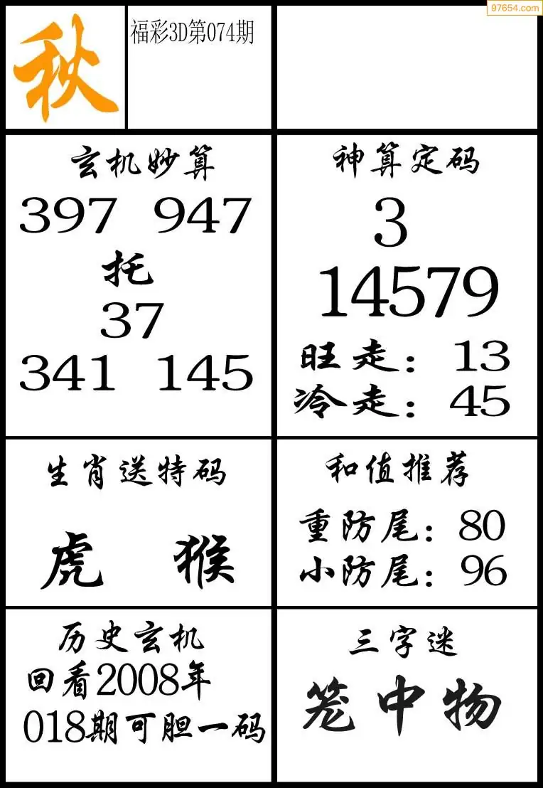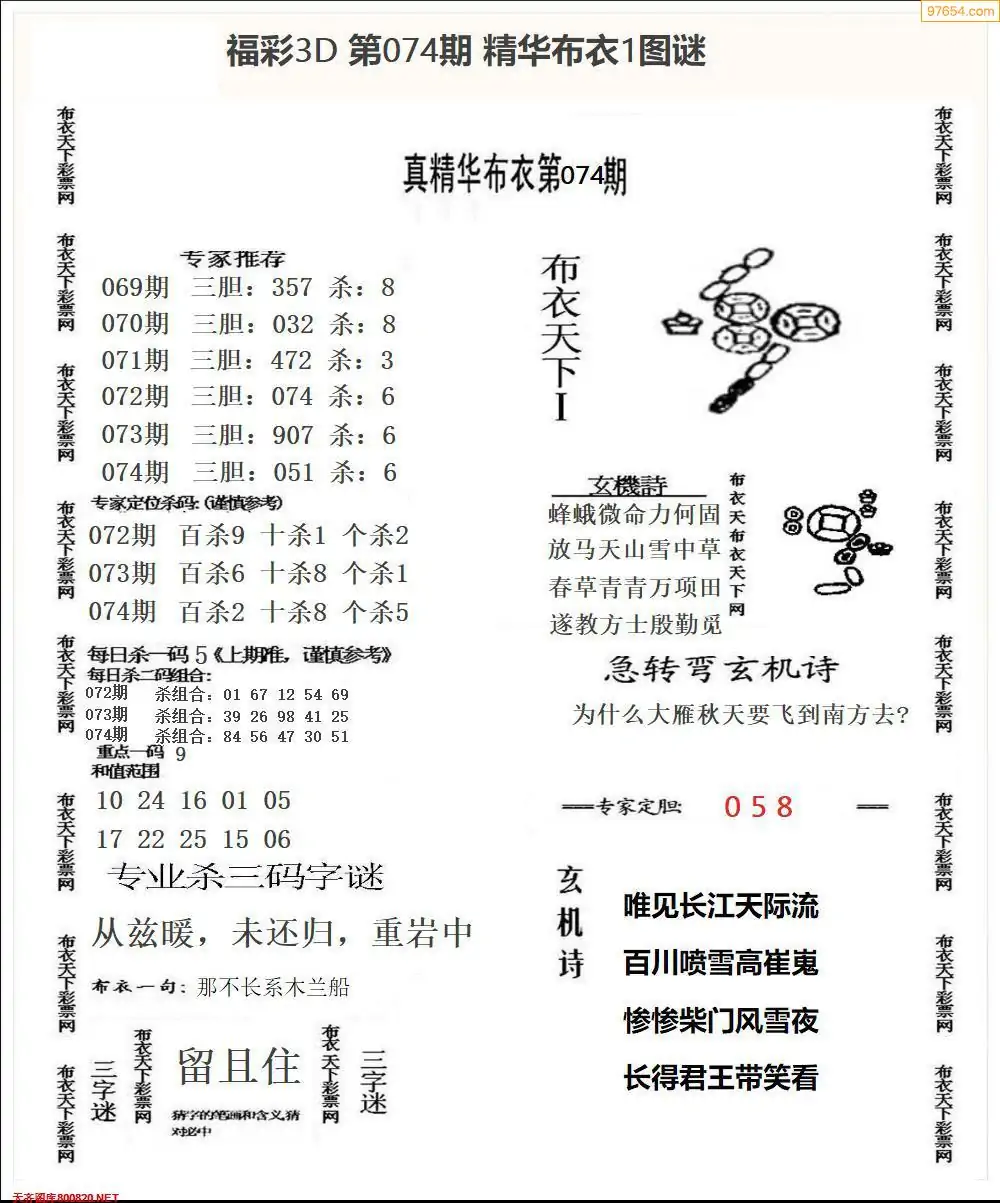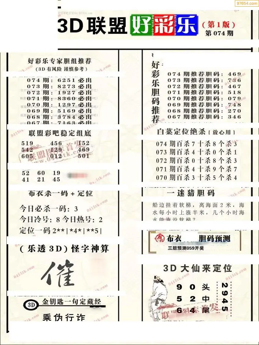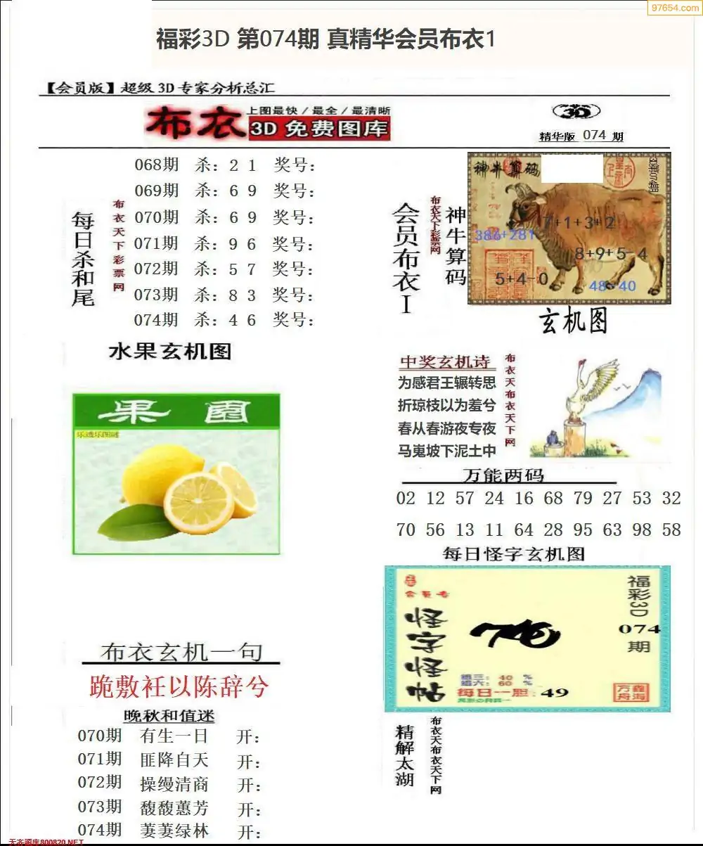 (3)2026074期3D预测总汇全图_福彩3d图谜字谜总汇
