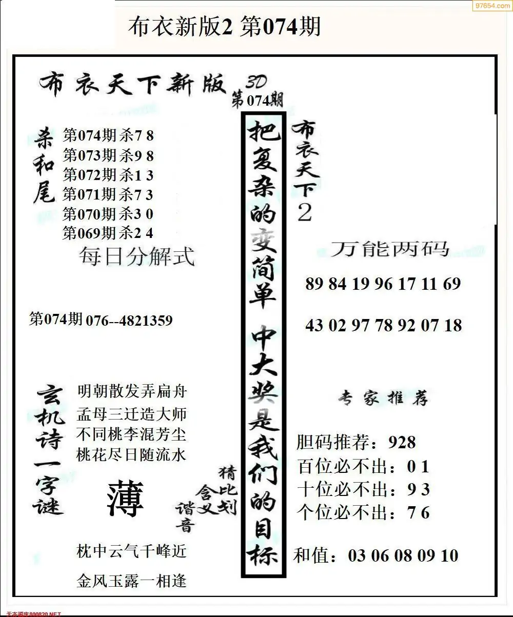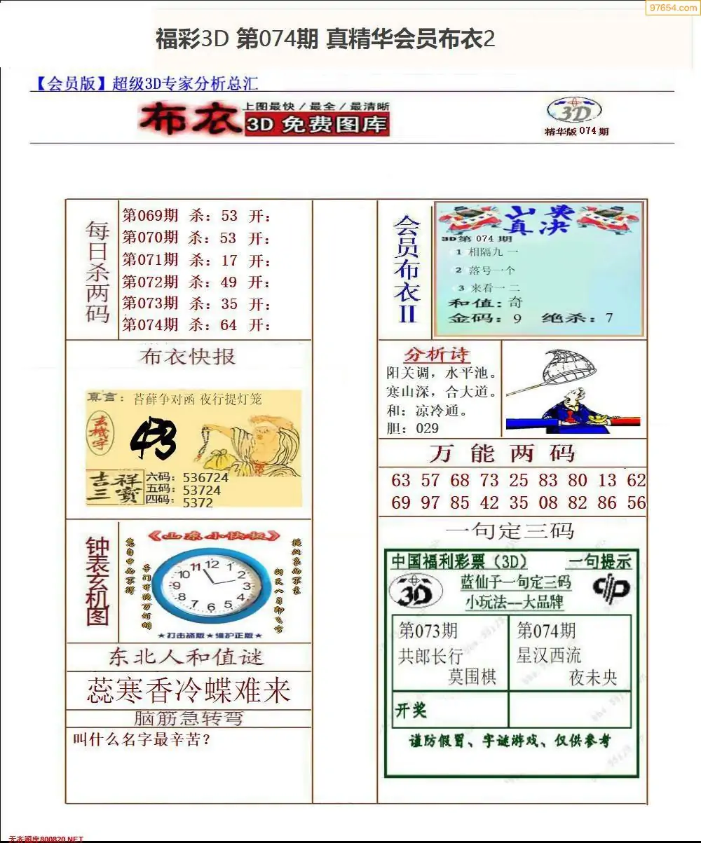 (2)26年074期本期3d图迷汇总_福彩3D图谜总汇图