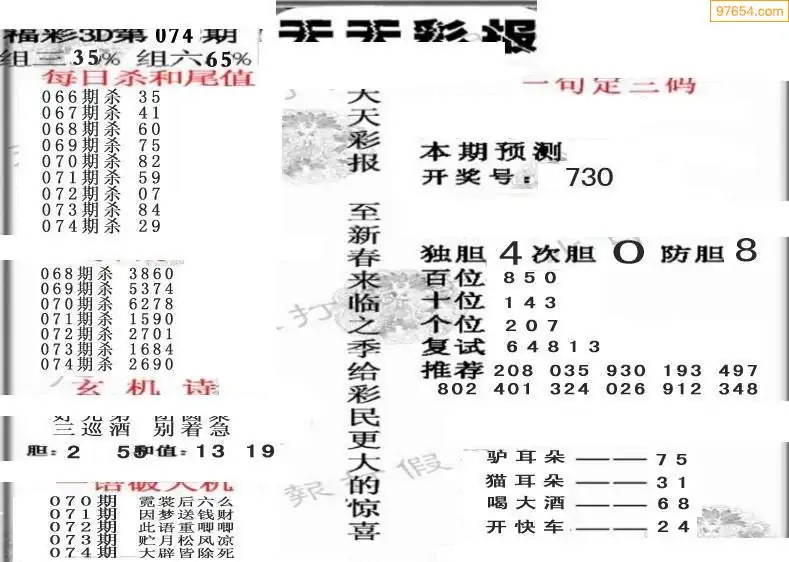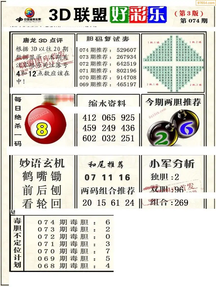 (8)26年074期今日3d各类彩报汇总