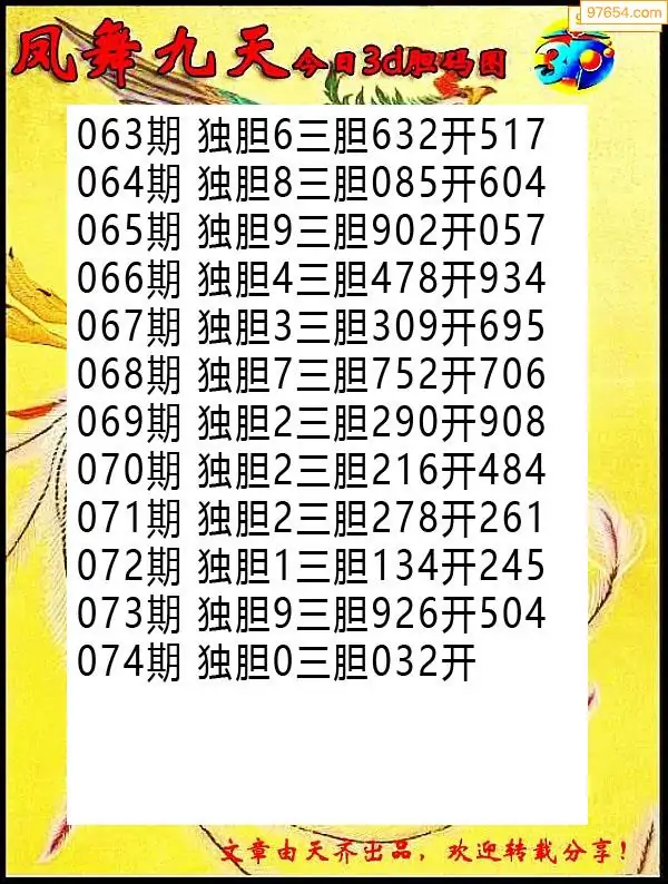 (8)26年073期今日3d各类彩报汇总