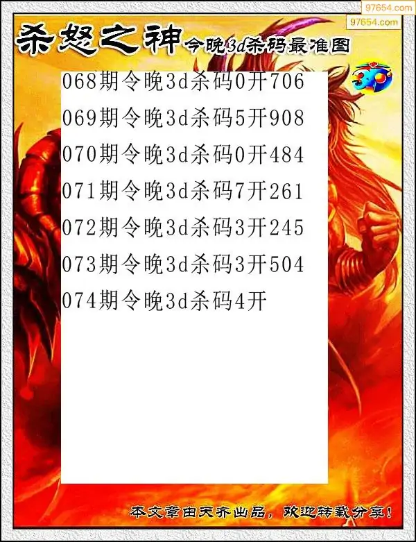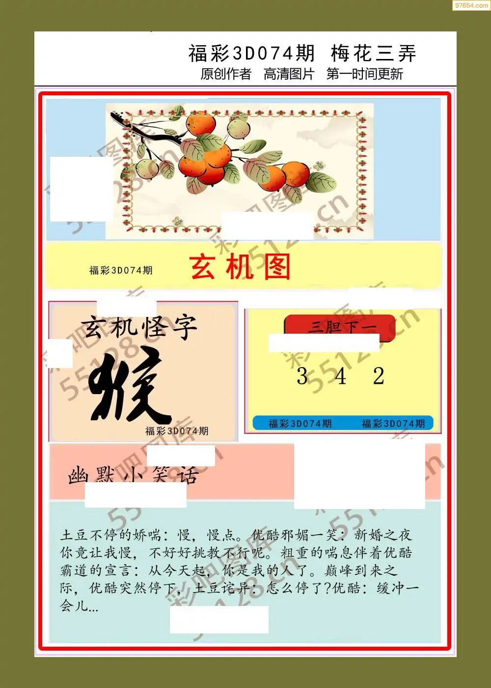 (8)26年074期今日3d各类彩报汇总