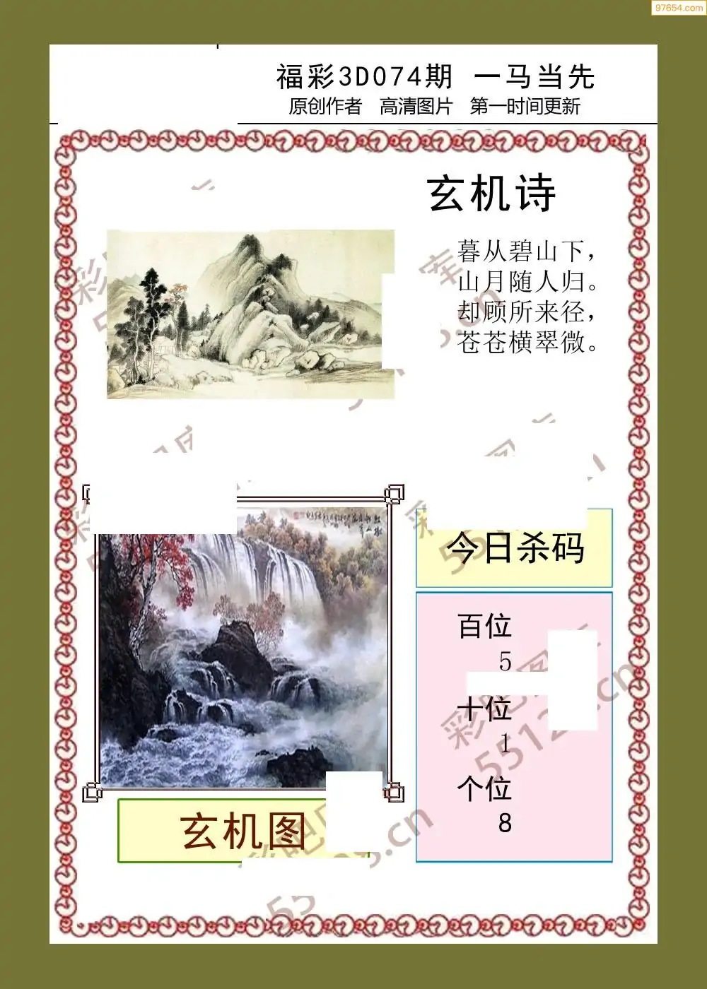 (2)26年074期本期3d图迷汇总_福彩3D图谜总汇图
